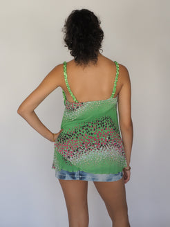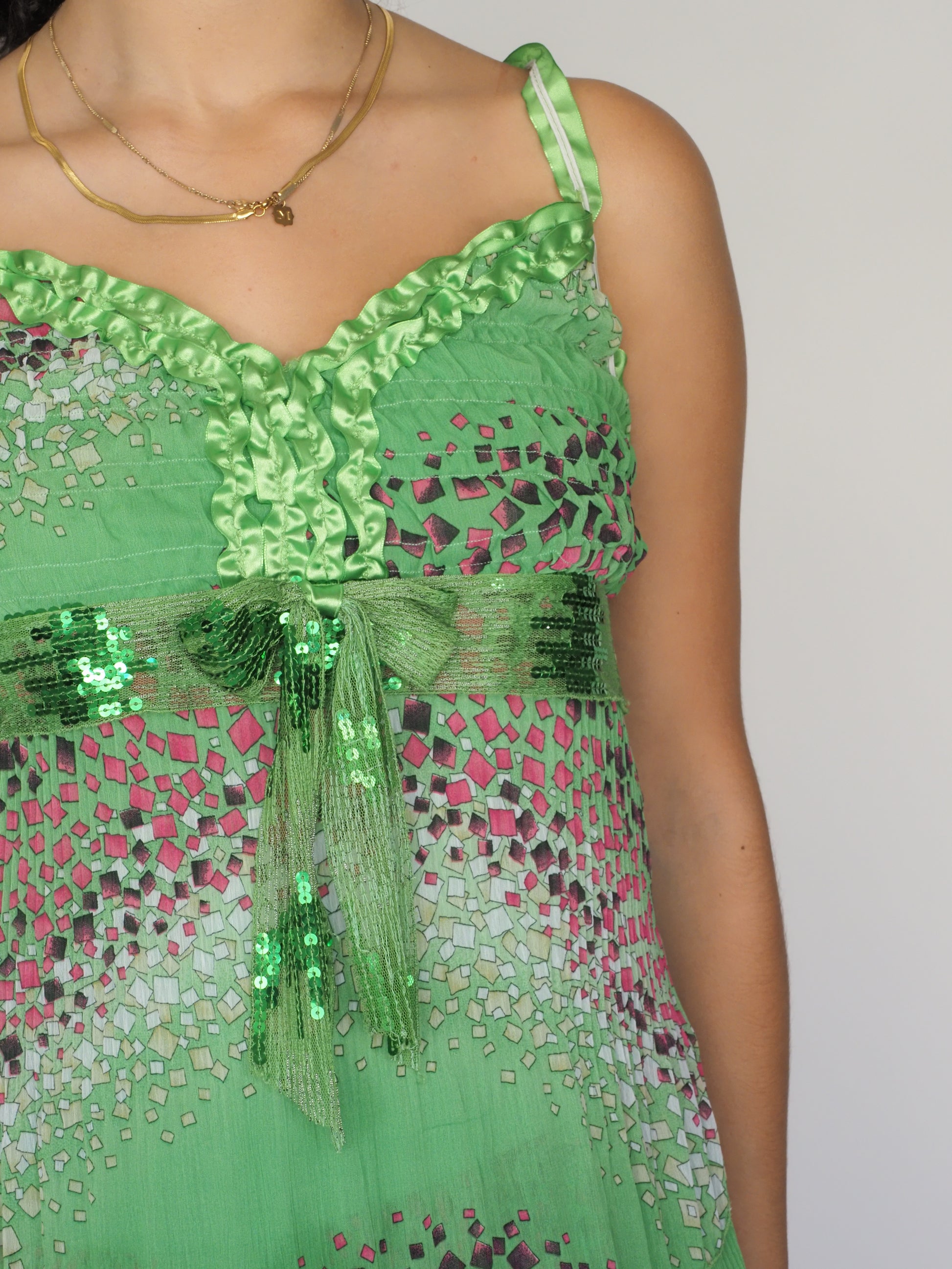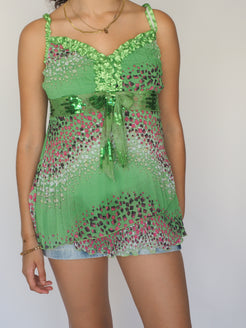 Arc en Ciel Vintage Y2K Green Mosaic Sequin Babydoll Top
