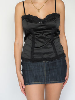 Artigli Black Satin Lace-Trim Corset Cami Top