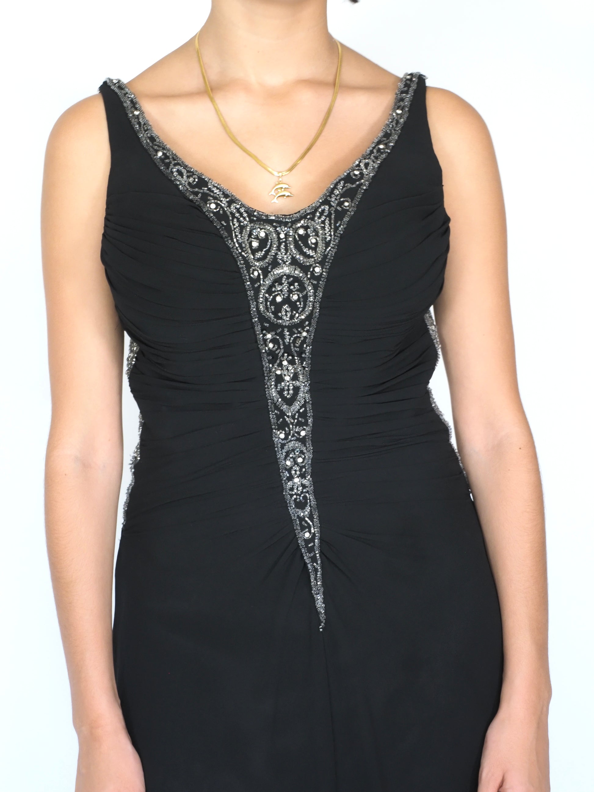Black Beaded Ruched Cocktail Dress – Vittoria Romani