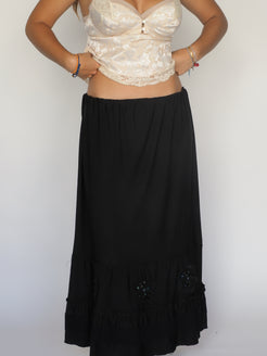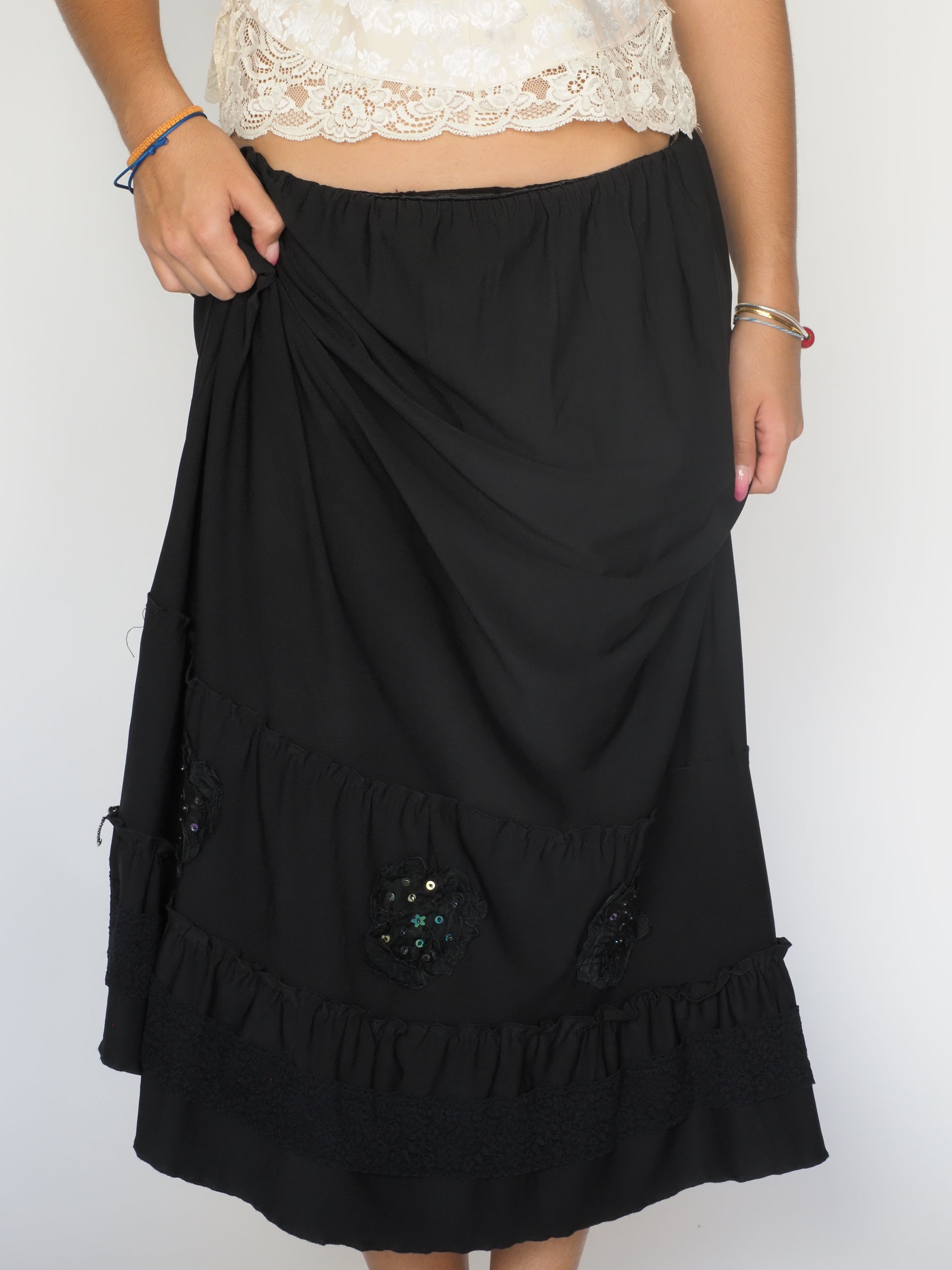 Black Ruffle Hem Maxi Skirt with Sequin Appliqué – Il Fione dell’Europa