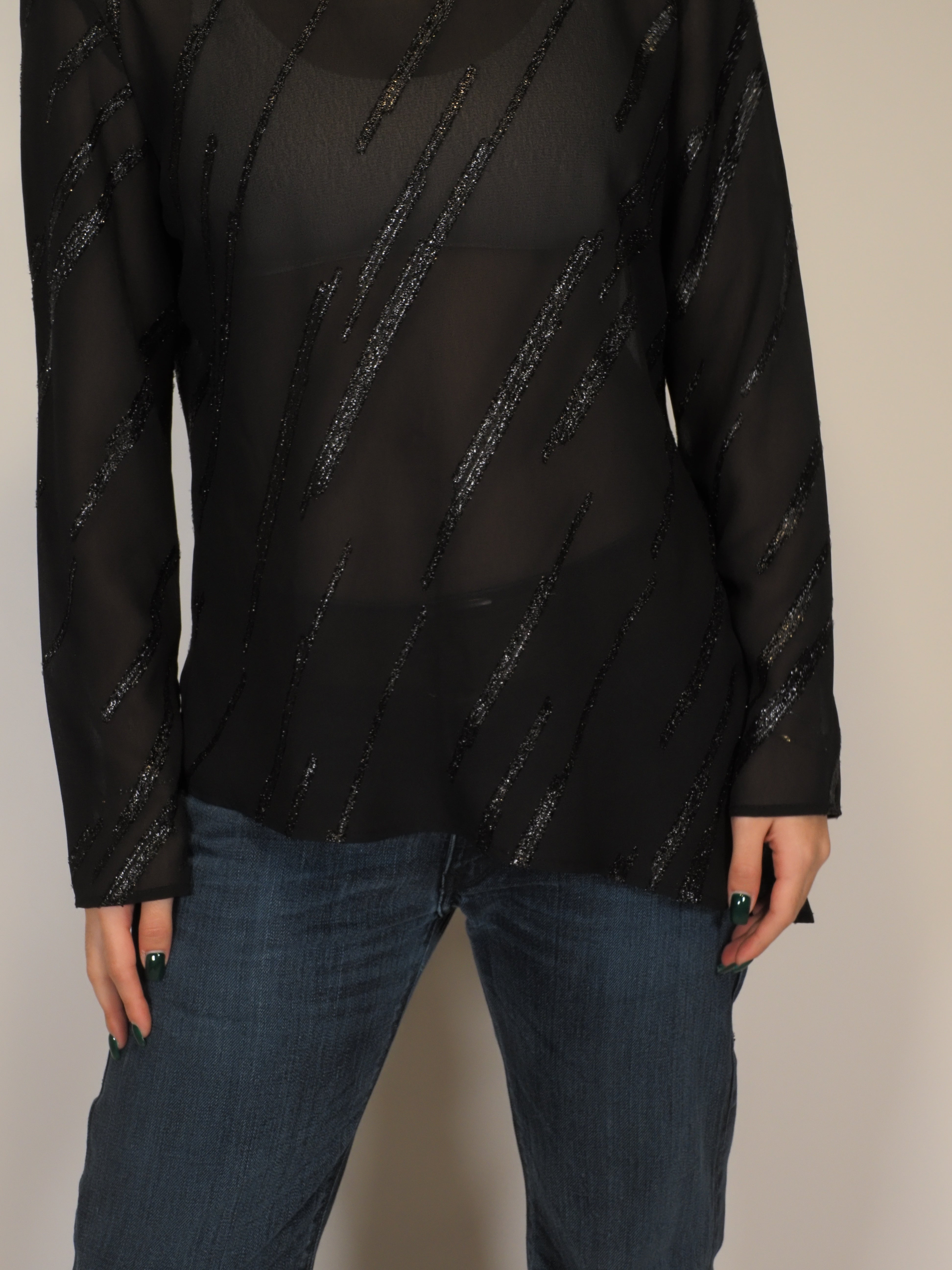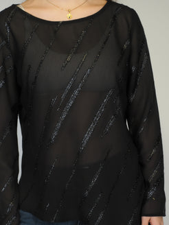 Black Sheer Sparkle Long-Sleeve Top – Frank Lyman