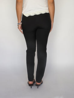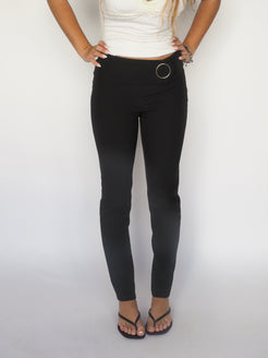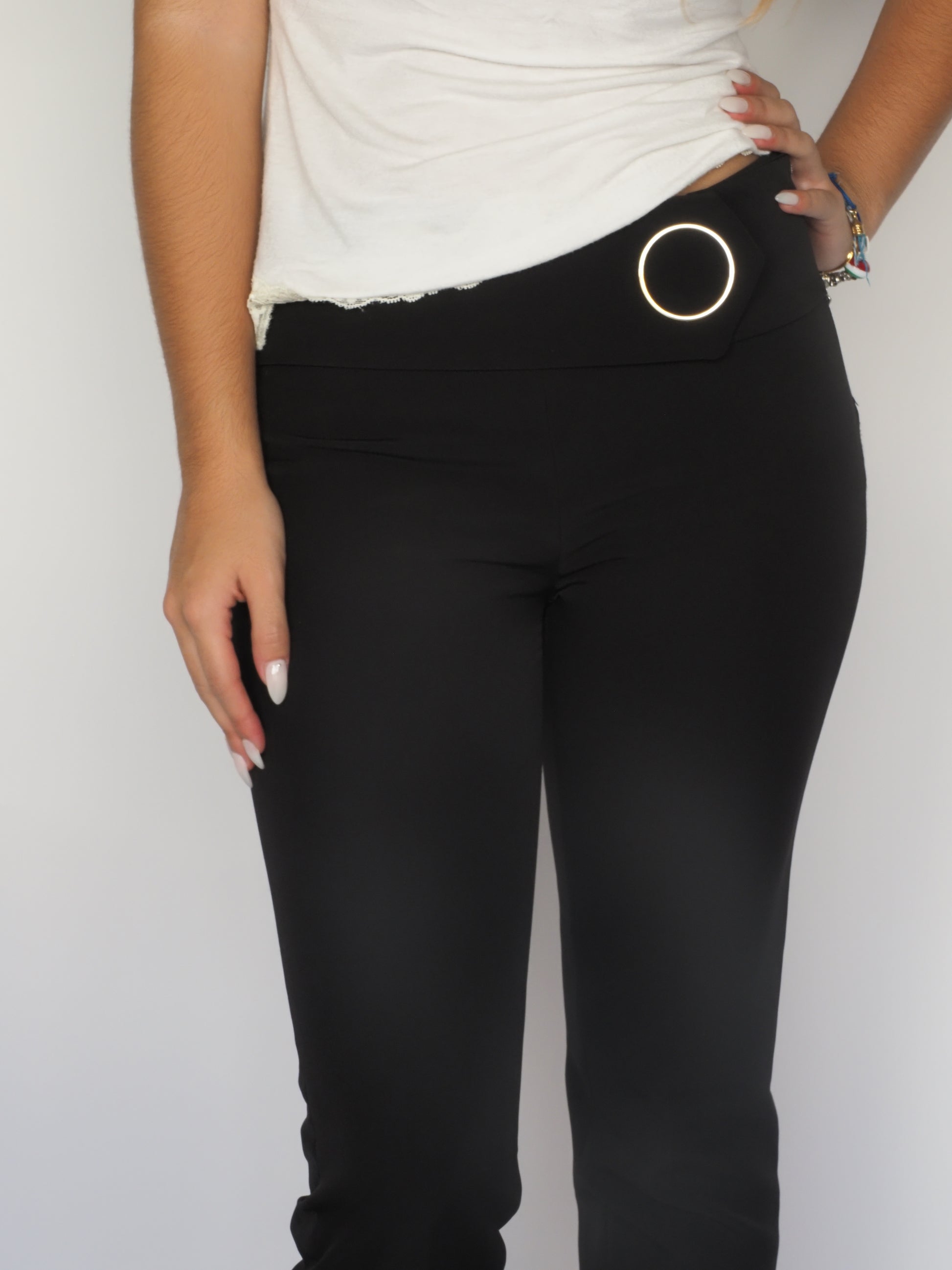 Black Slim-Fit Trousers with Metal Ring Detail — Paola Prata
