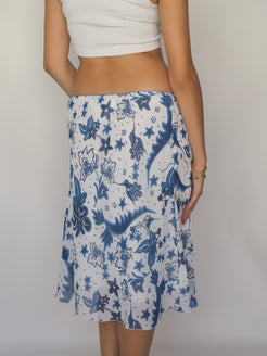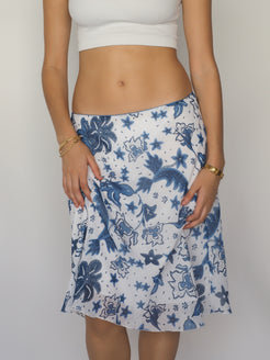 Blue & White Tropical Floral A-Line Skirt – Blue Motion