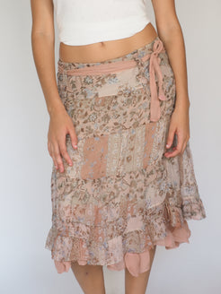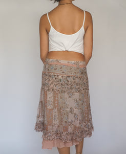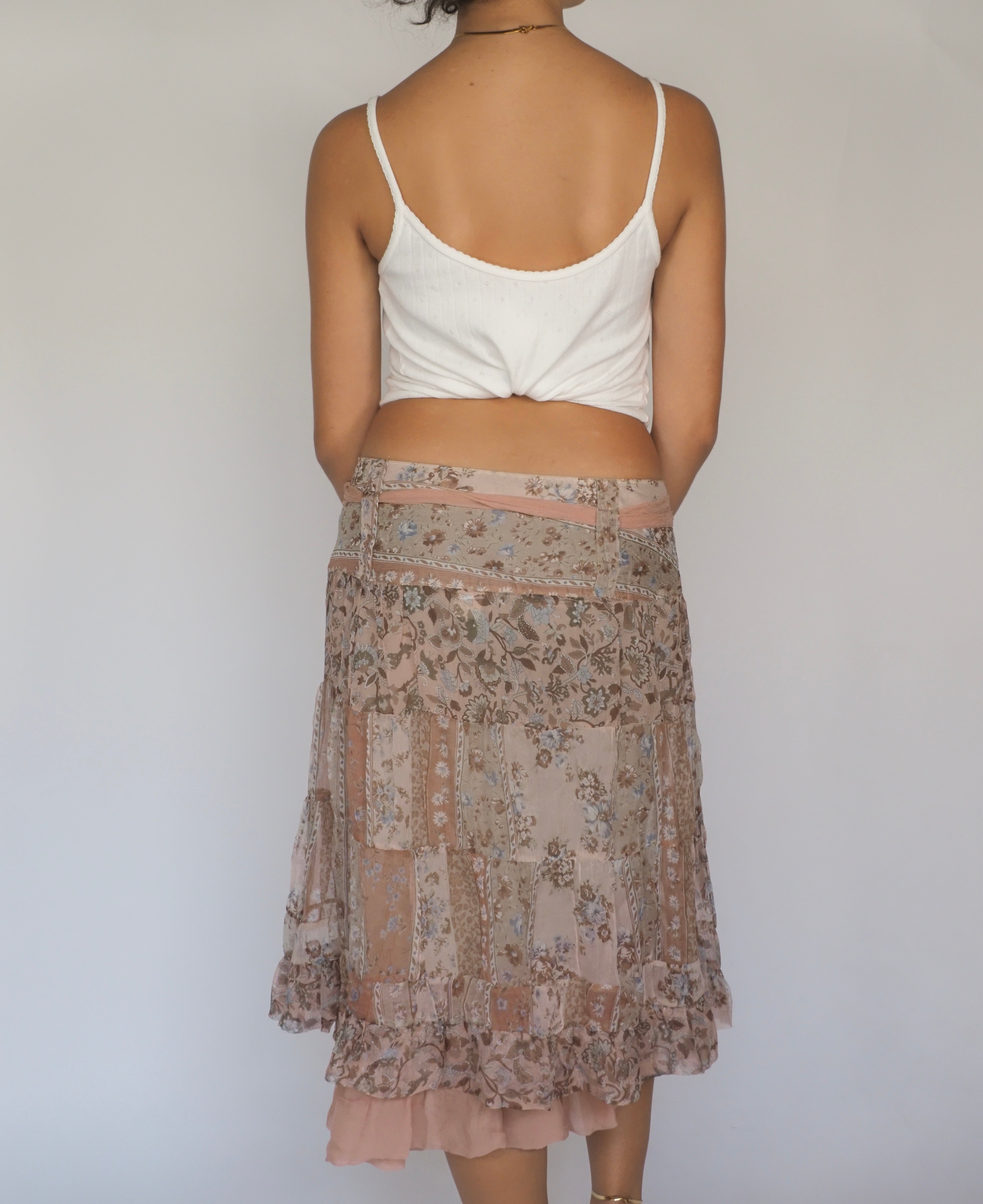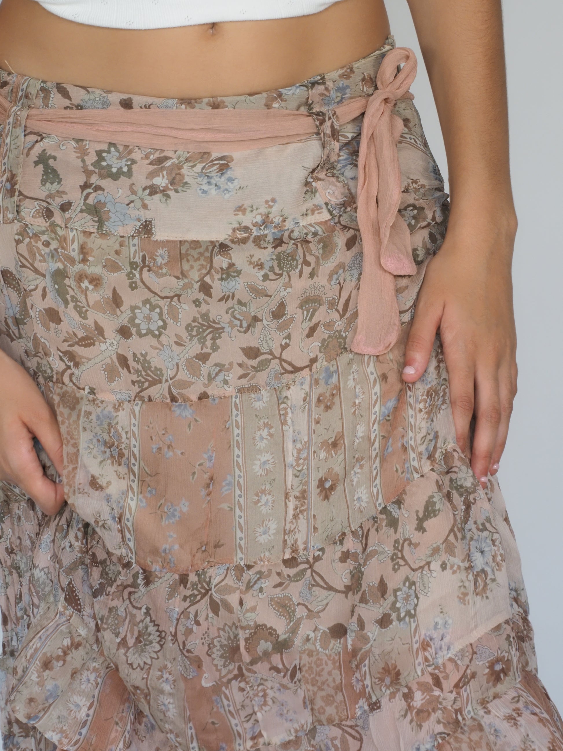 Boho Patchwork Chiffon Tie-Waist Skirt