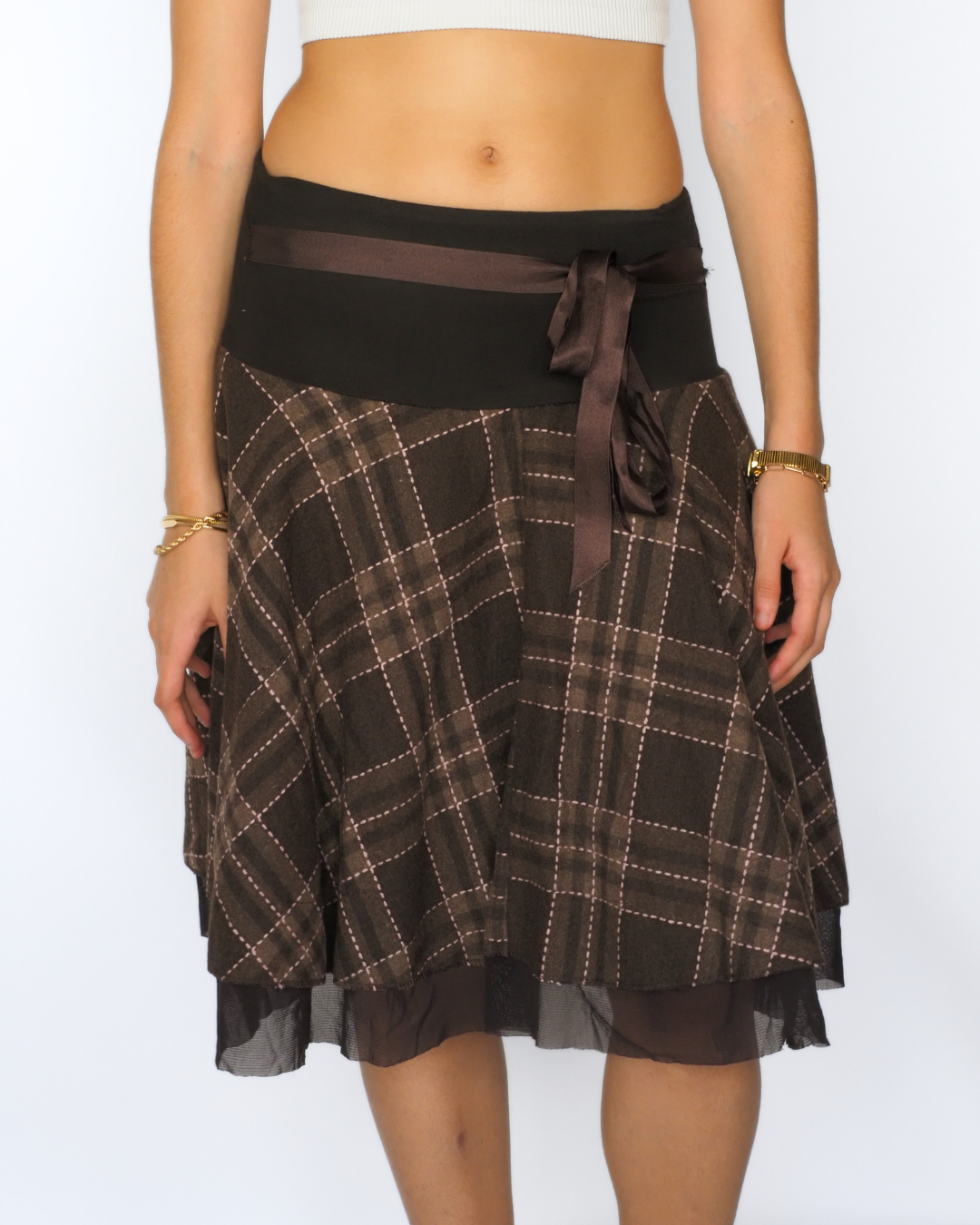 Brown Plaid Tie-Waist Mini Skirt