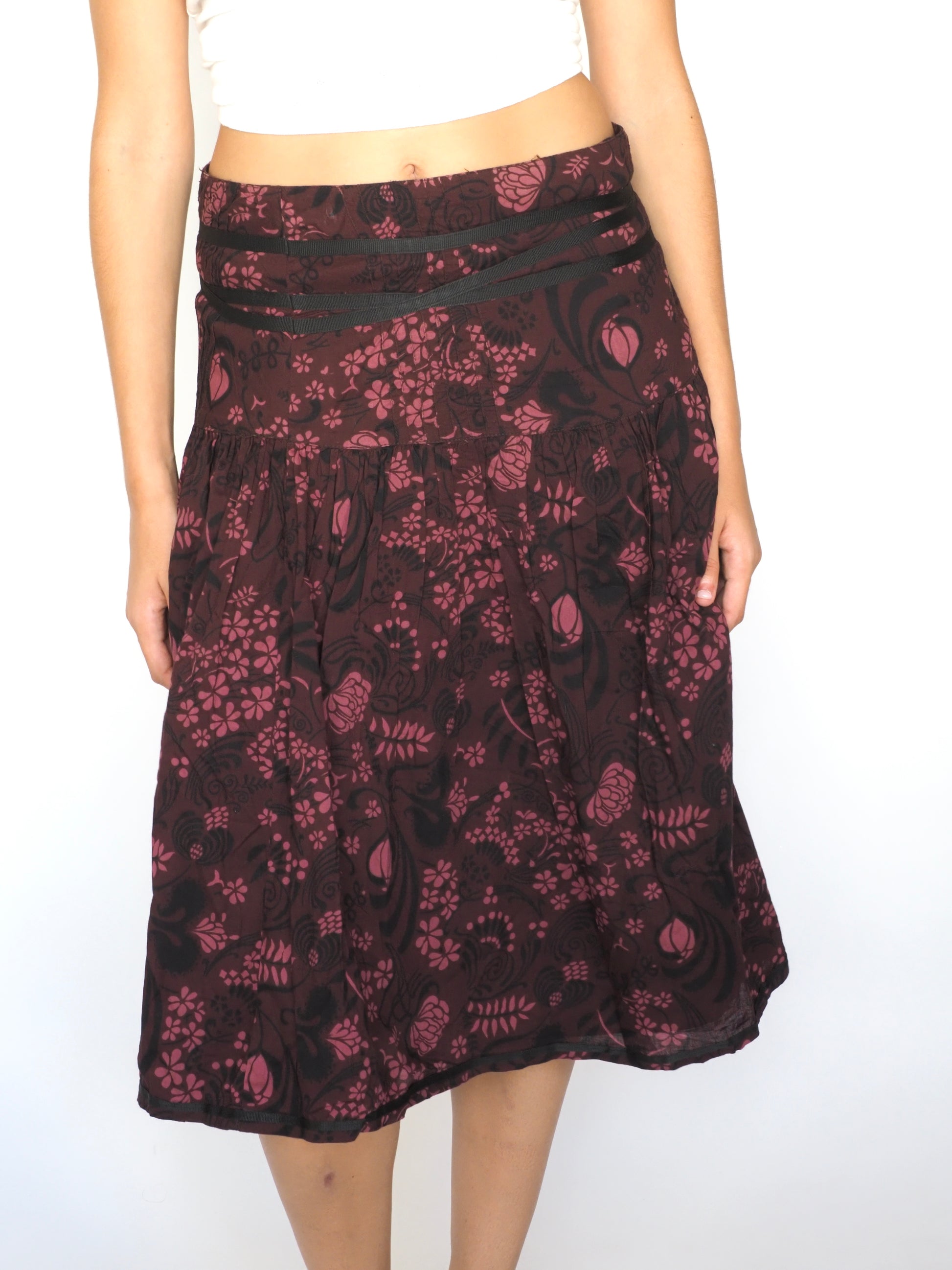 Burgundy & Black Floral Print Midi Skirt – H&M