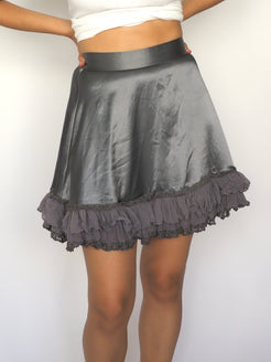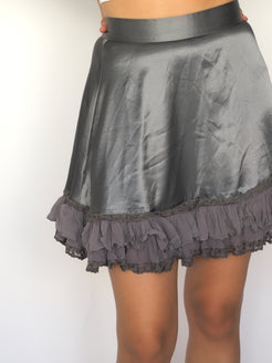 Byblos Italy Grey Satin Ruffle Mini Skirt
