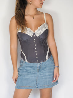 Charcoal Satin Corset Top with Lace Trim – C&A
