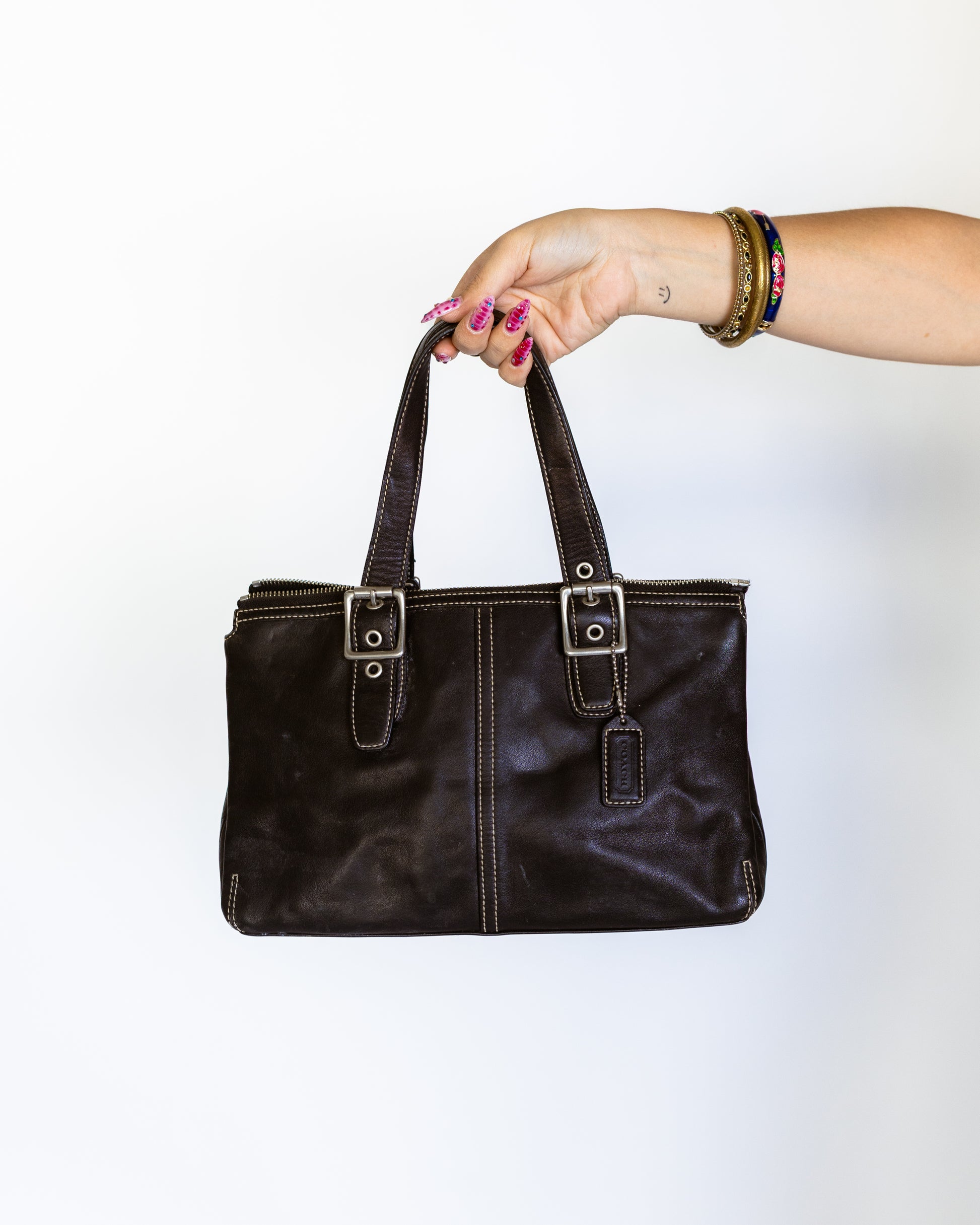 This design hails from a golden era of Coach — when they were blending luxury minimalism with just the right amount of edge. The chunky buckles and contrast stitching scream 2000s power-woman, but it still feels timeless today. Think “Devil Wears Prada,” but make it accessible.