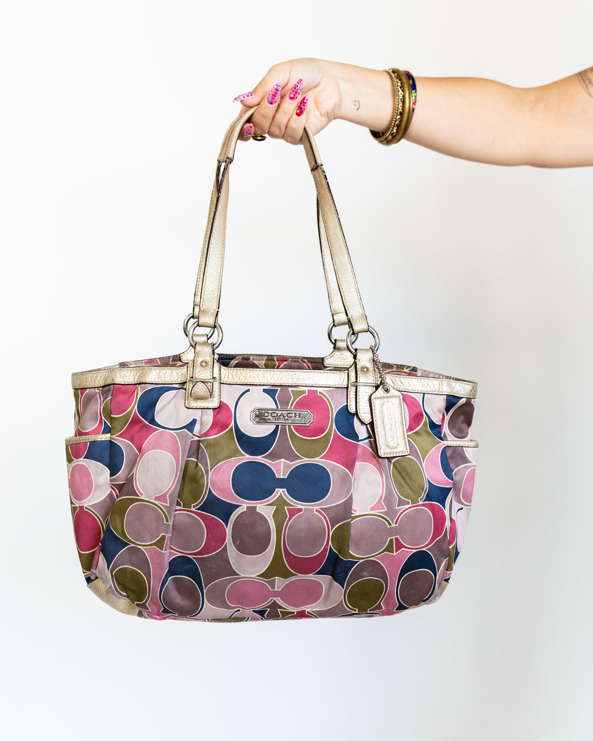 Playful, punchy, and practical — this Coach Gallery Tote is a rare multicolour signature satin style, fea...