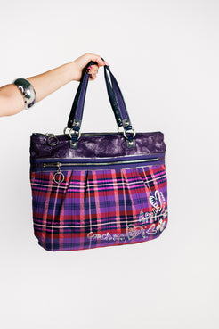 A standout from Coach’s mid-2000s Poppy collection, this vibrant purple-and-red tartan-print tote with patent-leather trim and playful graffiti-style accents was retired after a single season. Today it’s a must-have for Y2K-revival enthusiasts looking for a one-of-a-kind statement piece.