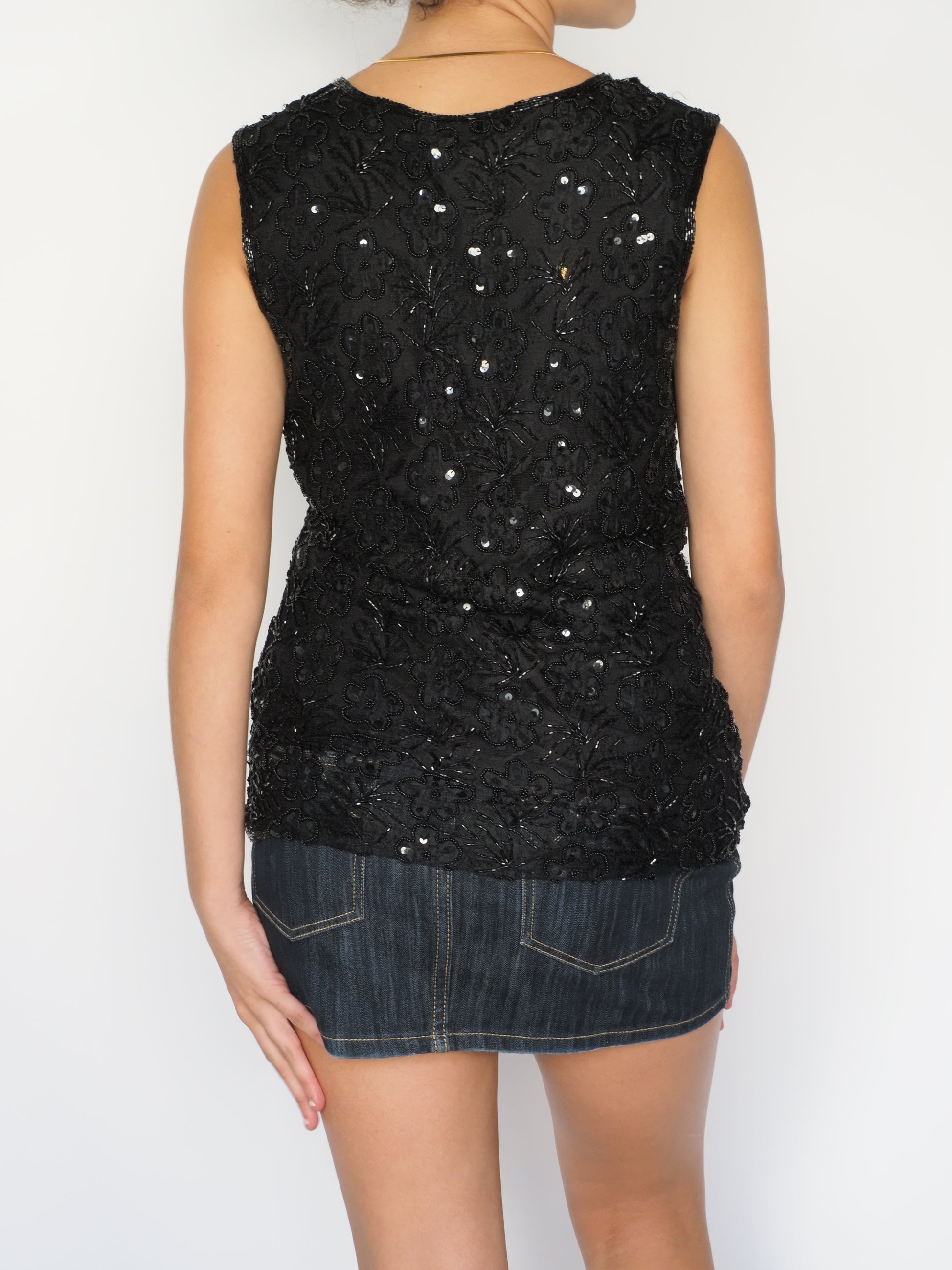 Collection Elegant Black Beaded & Sequin Sleeveless Top