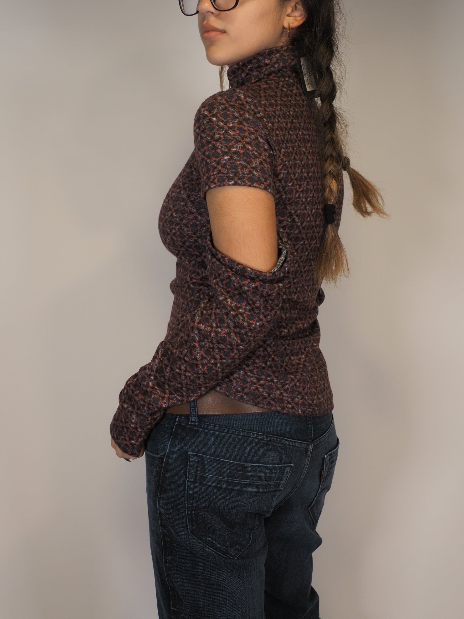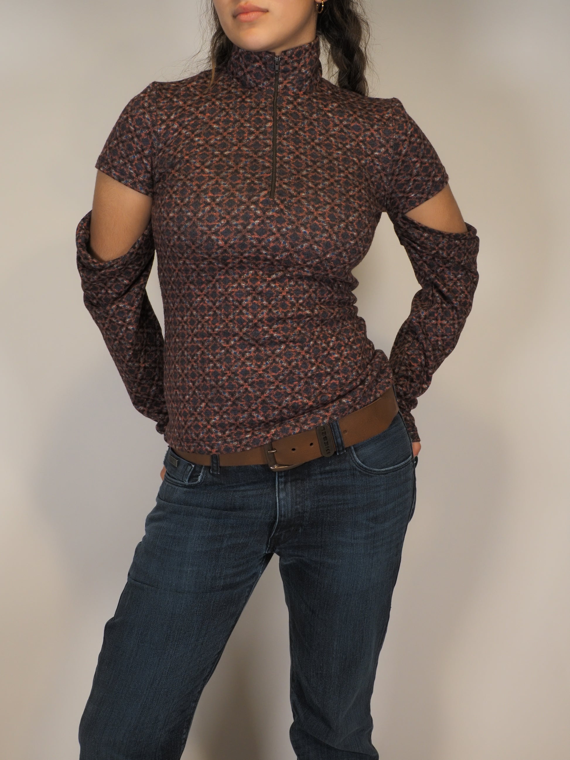 Cut-Out Sleeve Patterned Zip Top — Pologarage