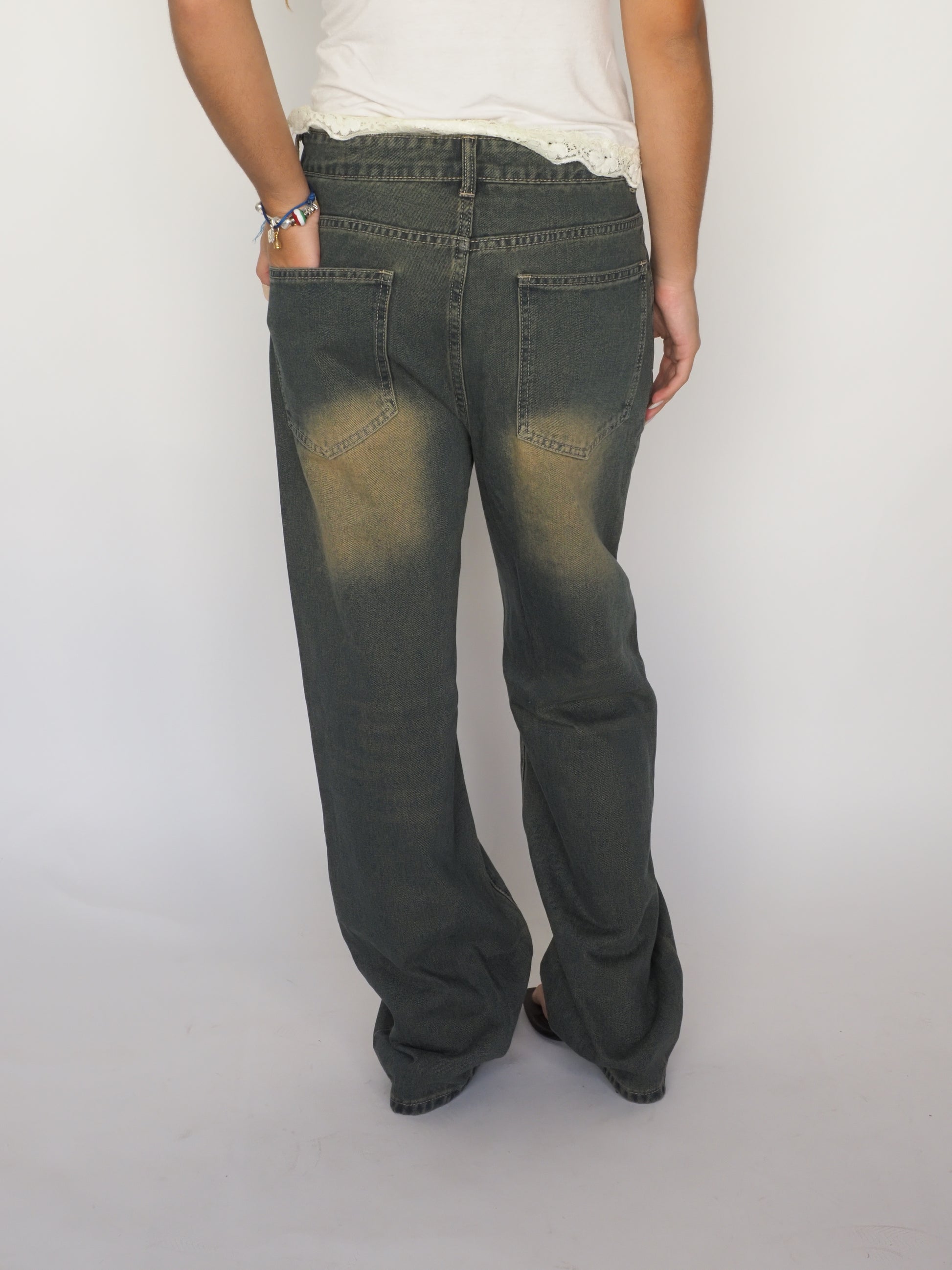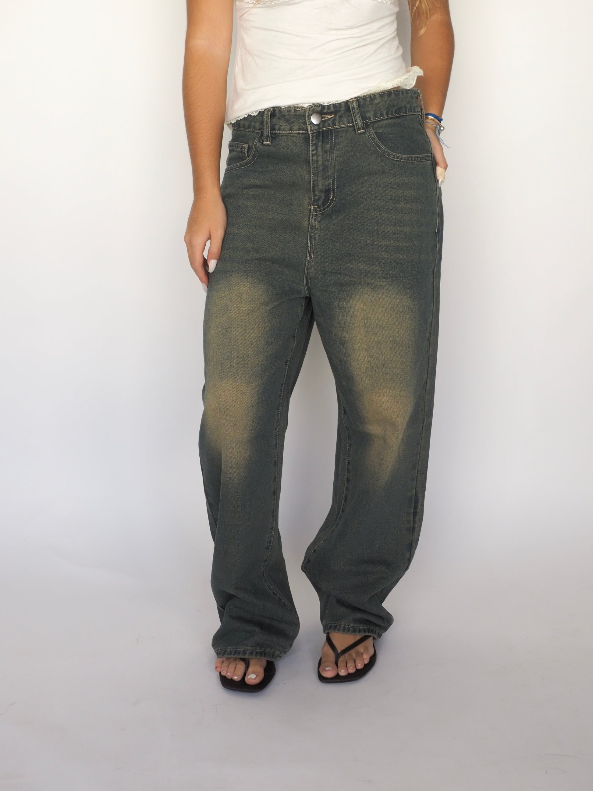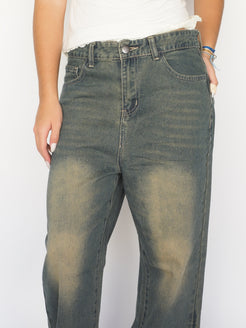 Faded Straight-Leg Jeans in Washed Olive