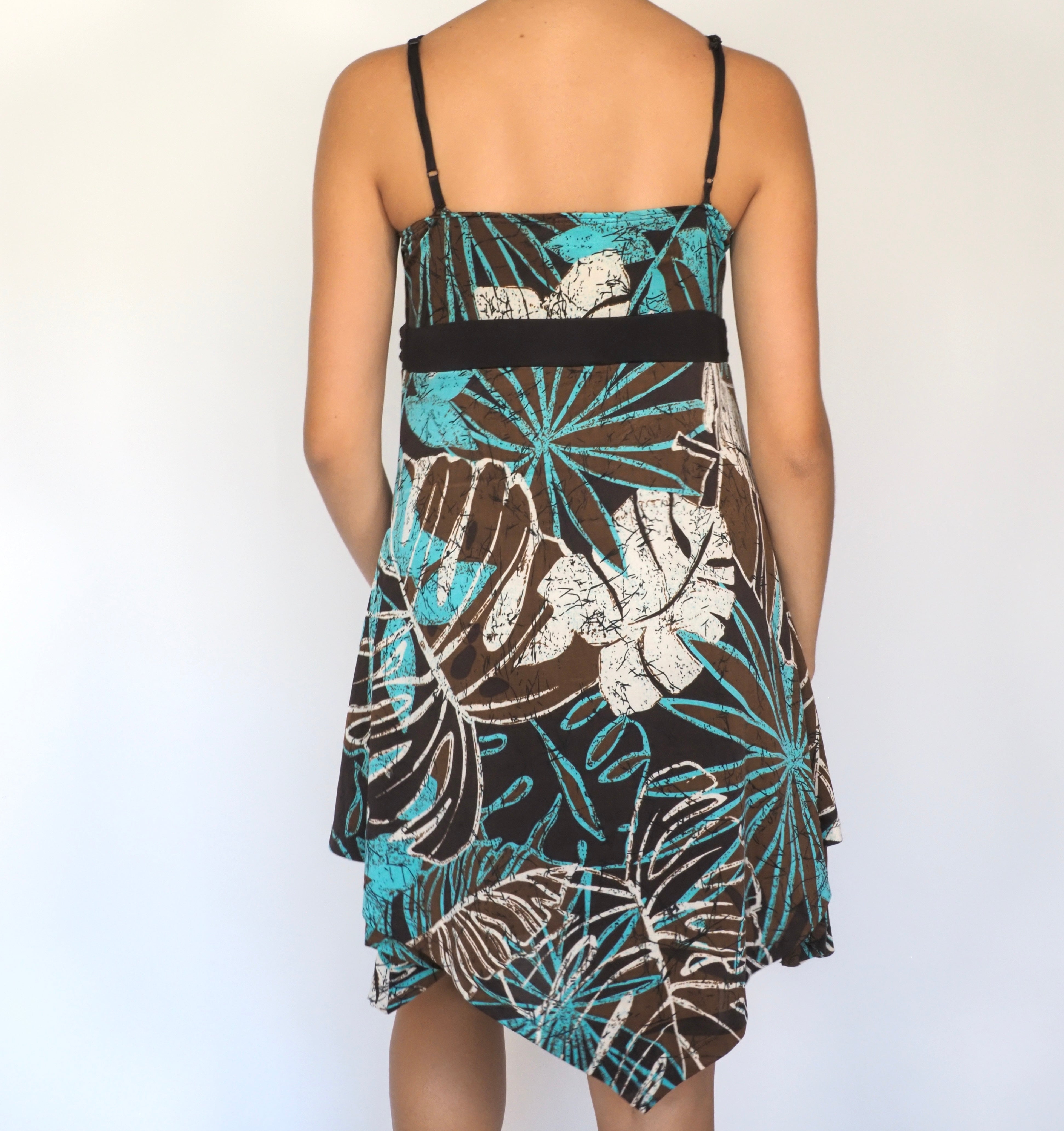 Fashion Fair Tropical Print Slip Dress (Turquoise & Brown)