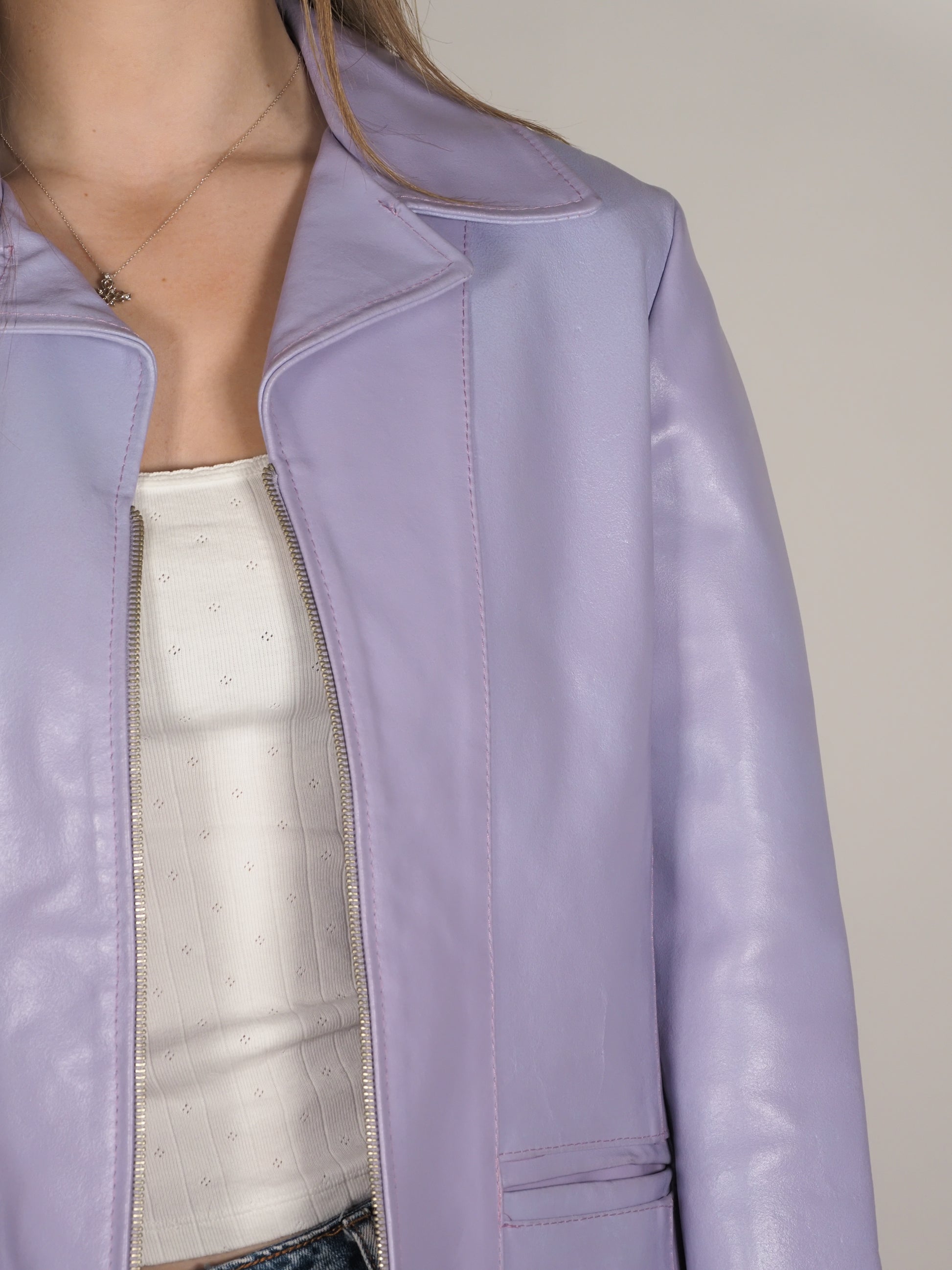 Fellini Real Leather Jacket – Lilac Y2K Zip-Up