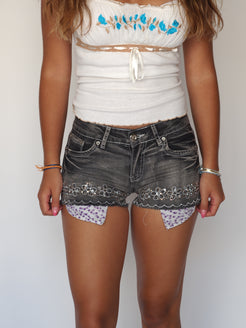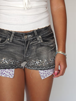 Hanel Haute Floral-Embroidered Distressed Denim Shorts