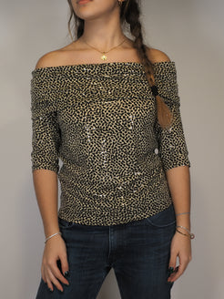 Joseph Ribkoff Leopard Print Off-Shoulder Stretch Top