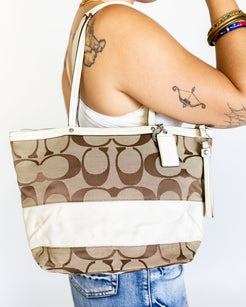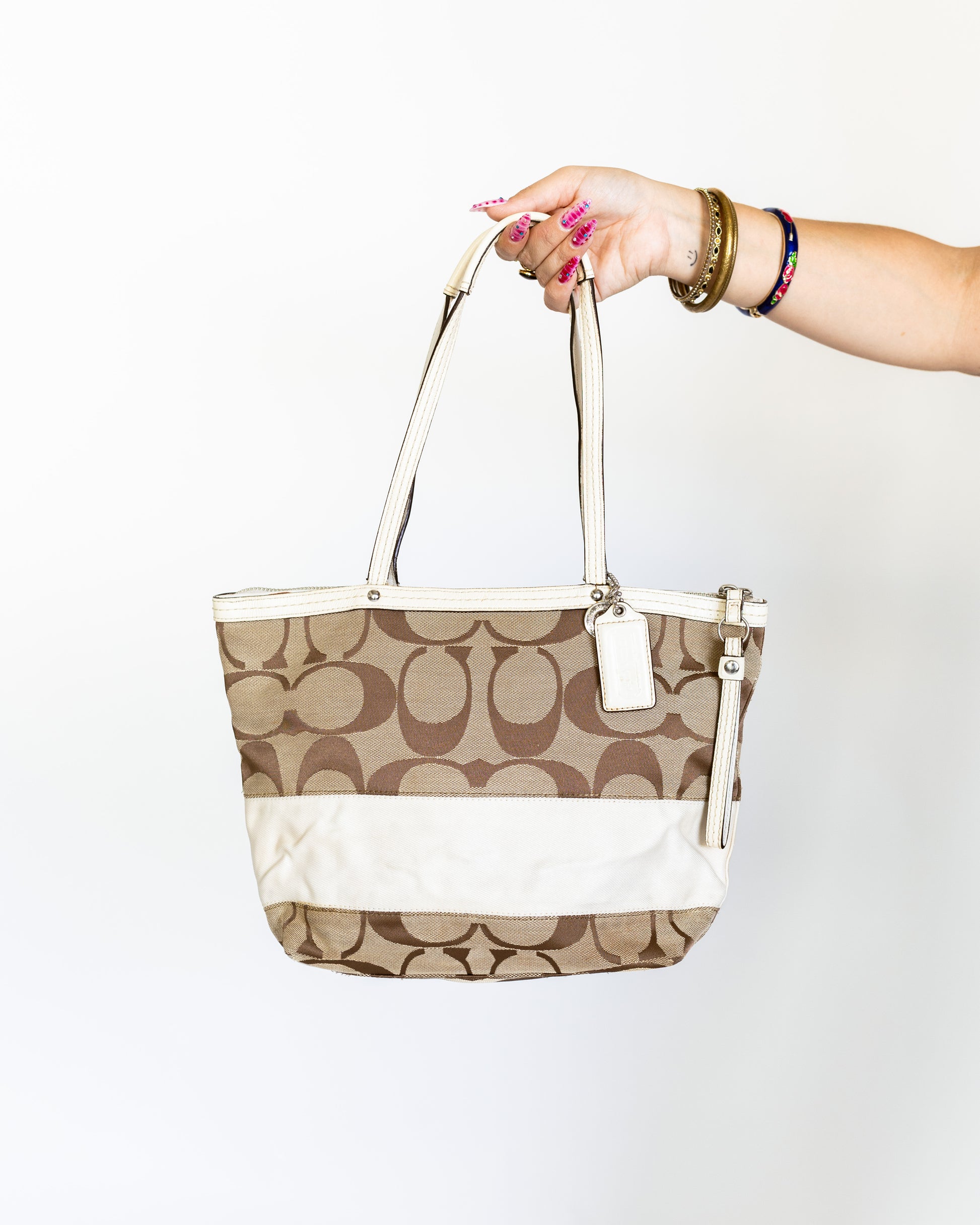 Part of Coach’s best-selling Signature Stripe series, this tote was made for everyday wear with a touch of chic. The bold “C” logo print and contrast stripe detailing make it unmistakably Coach — perfect for the Y2K era when logomania ruled. It’s timeless, versatile, and holds everything you need.