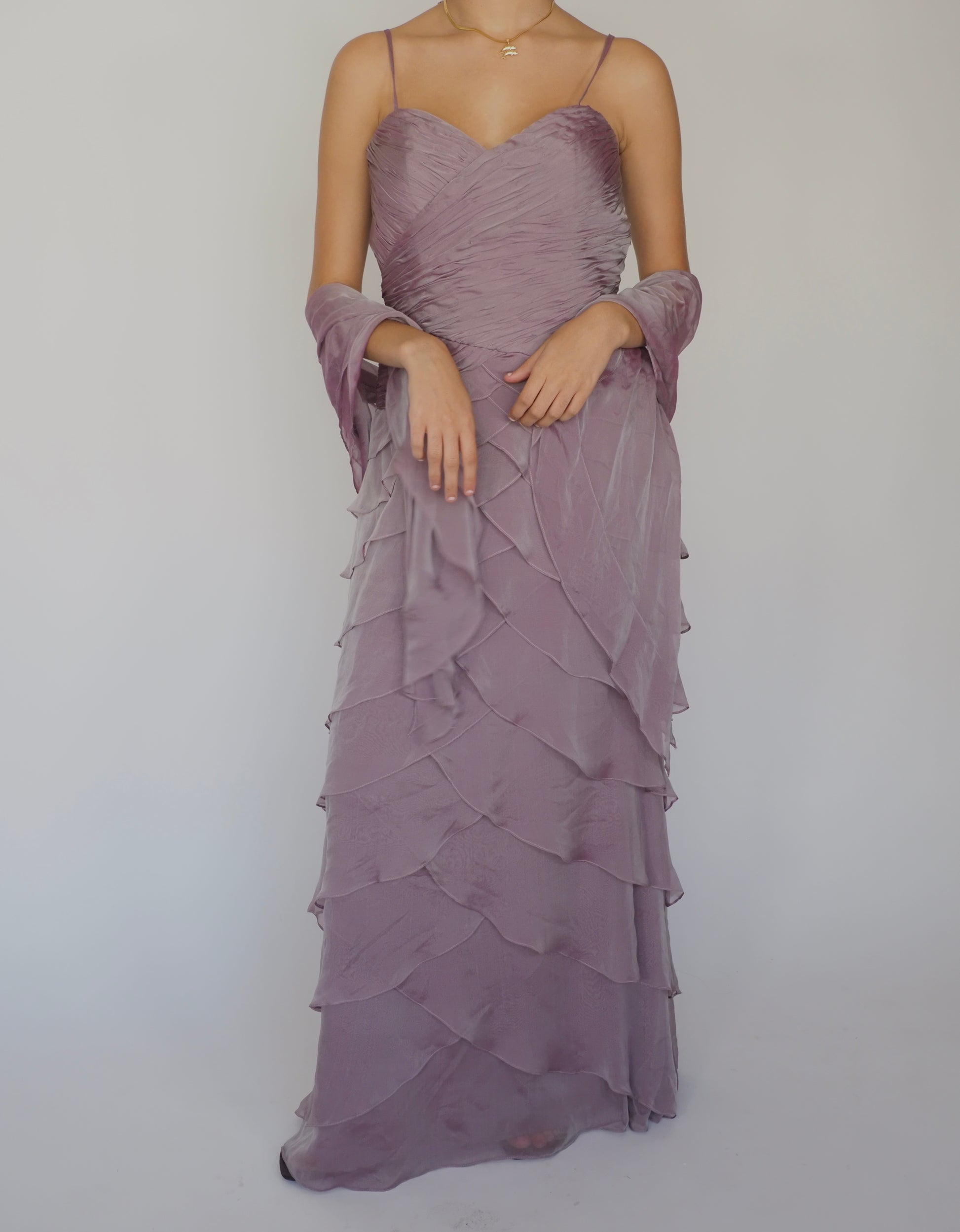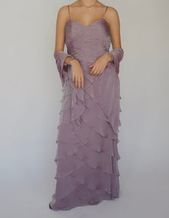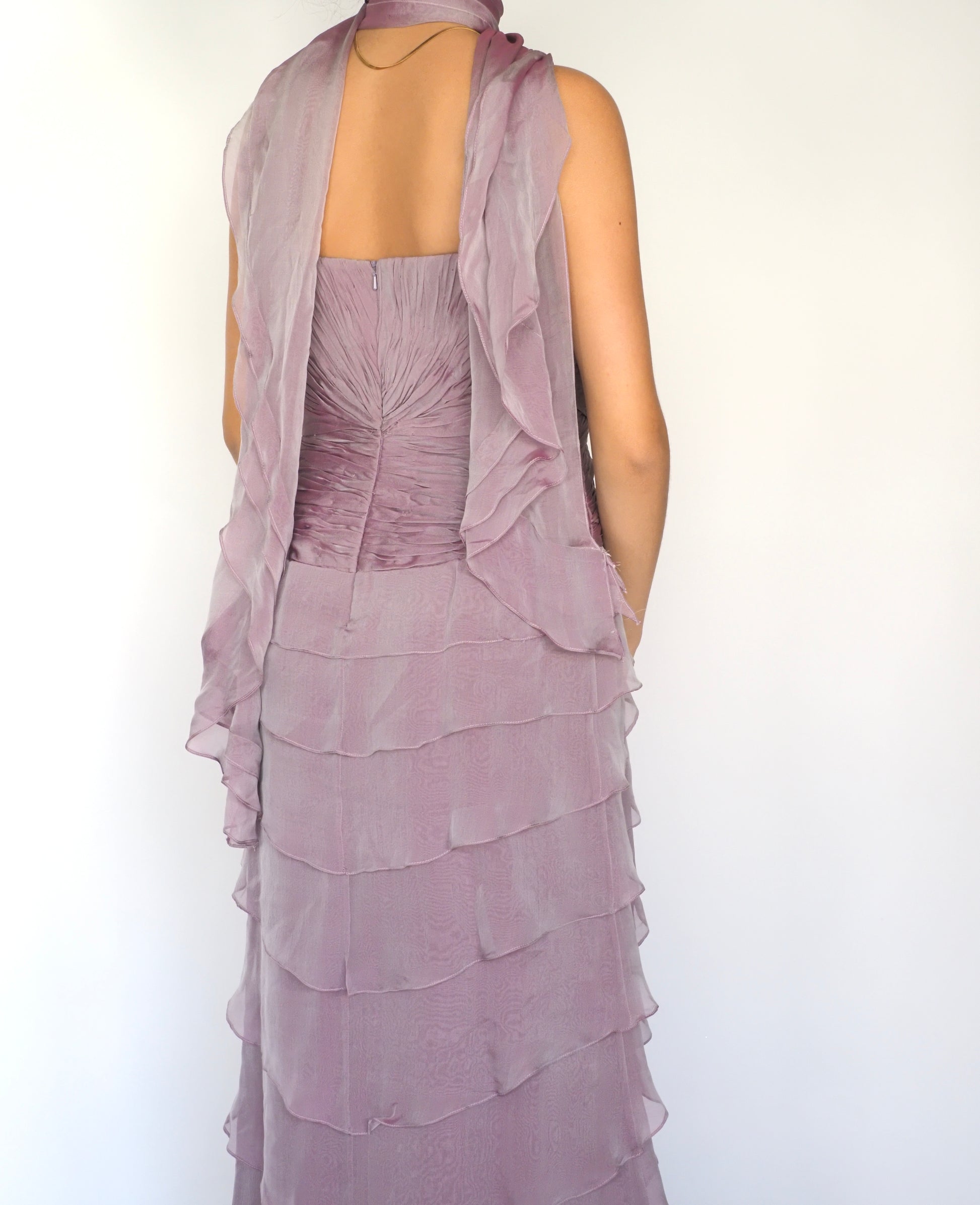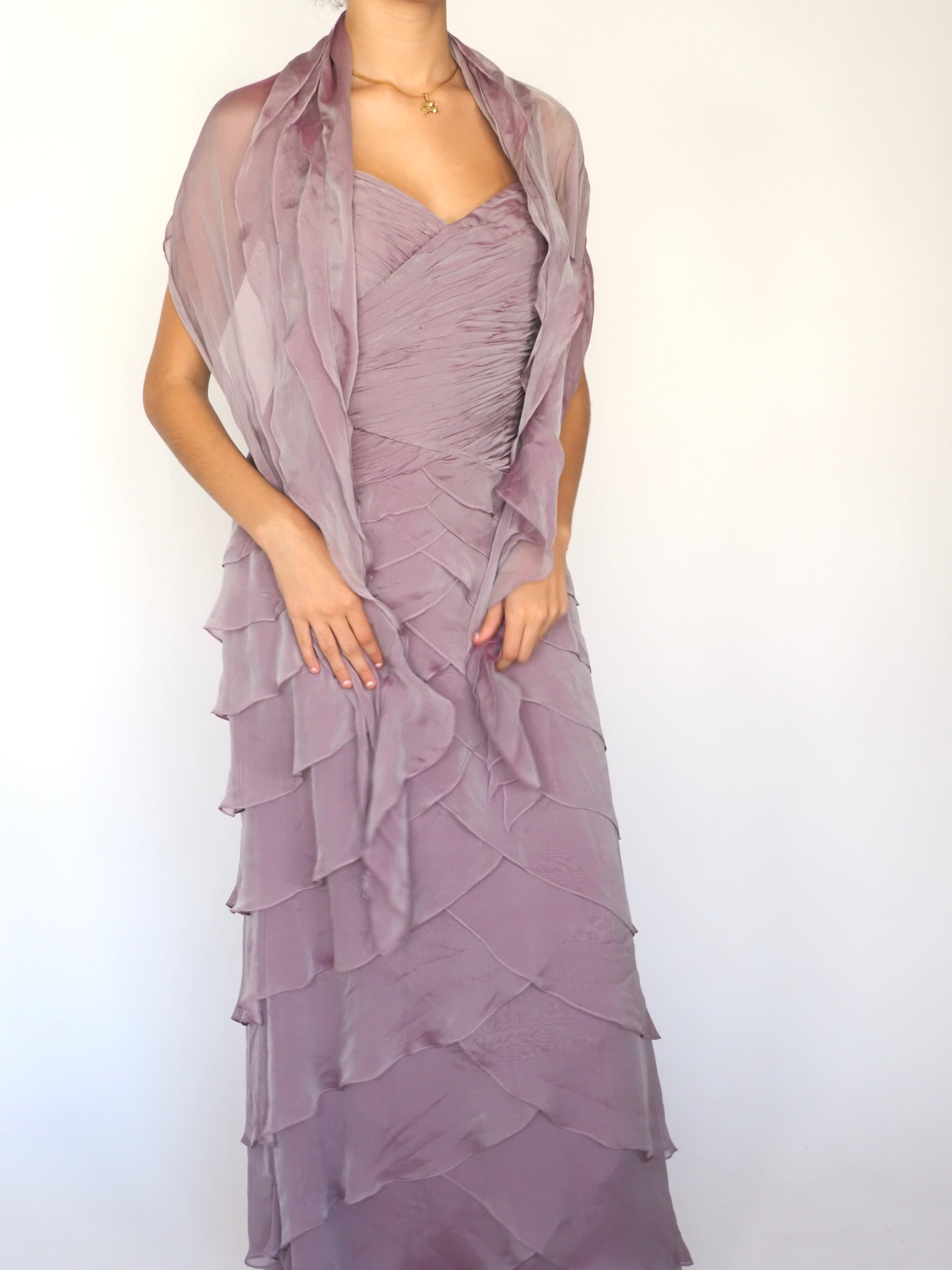 Lavender Tiered Chiffon Gown with Matching Scarf