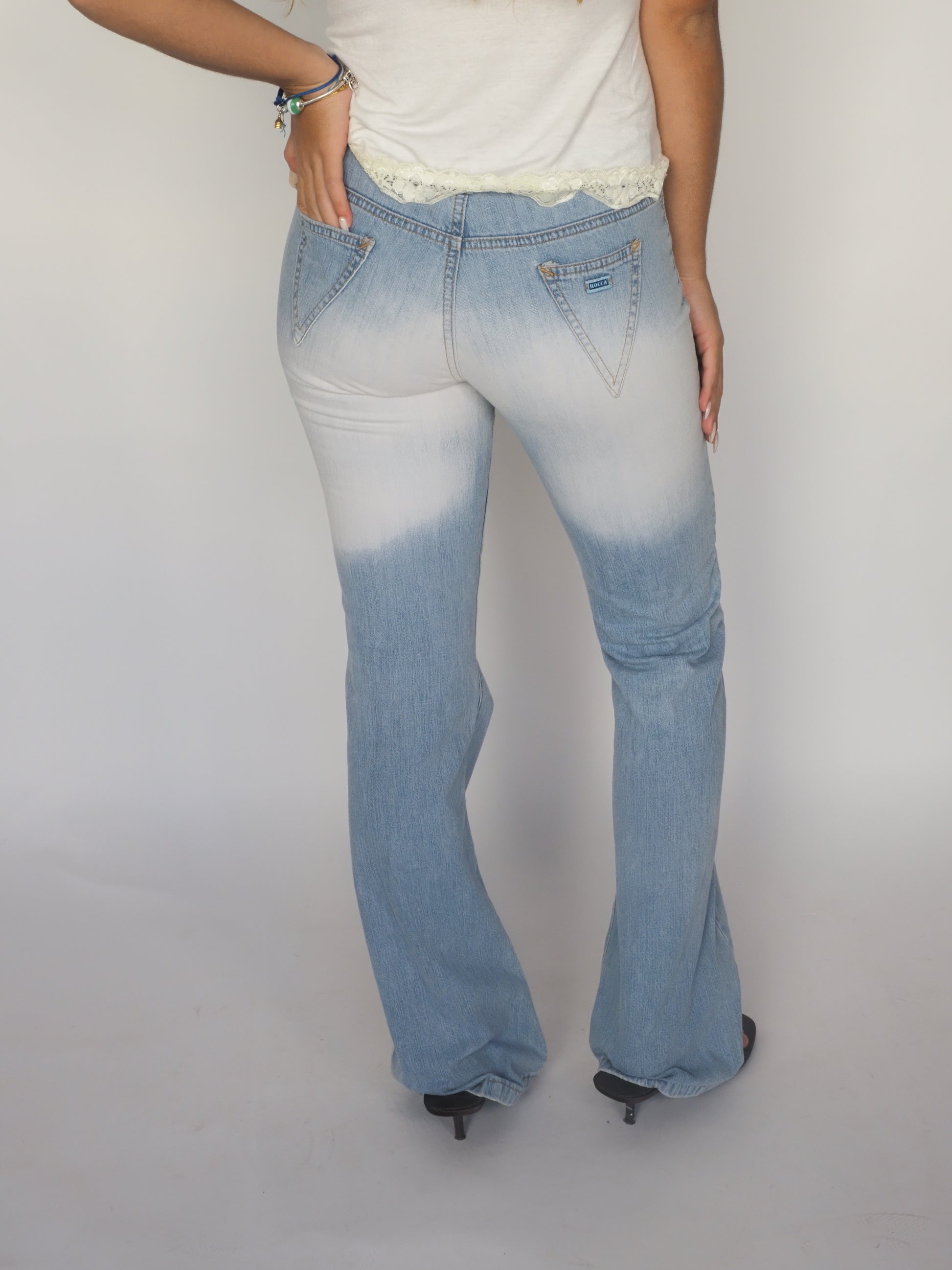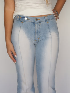 Light Wash Flared Jeans with Faded Panels – Kocca