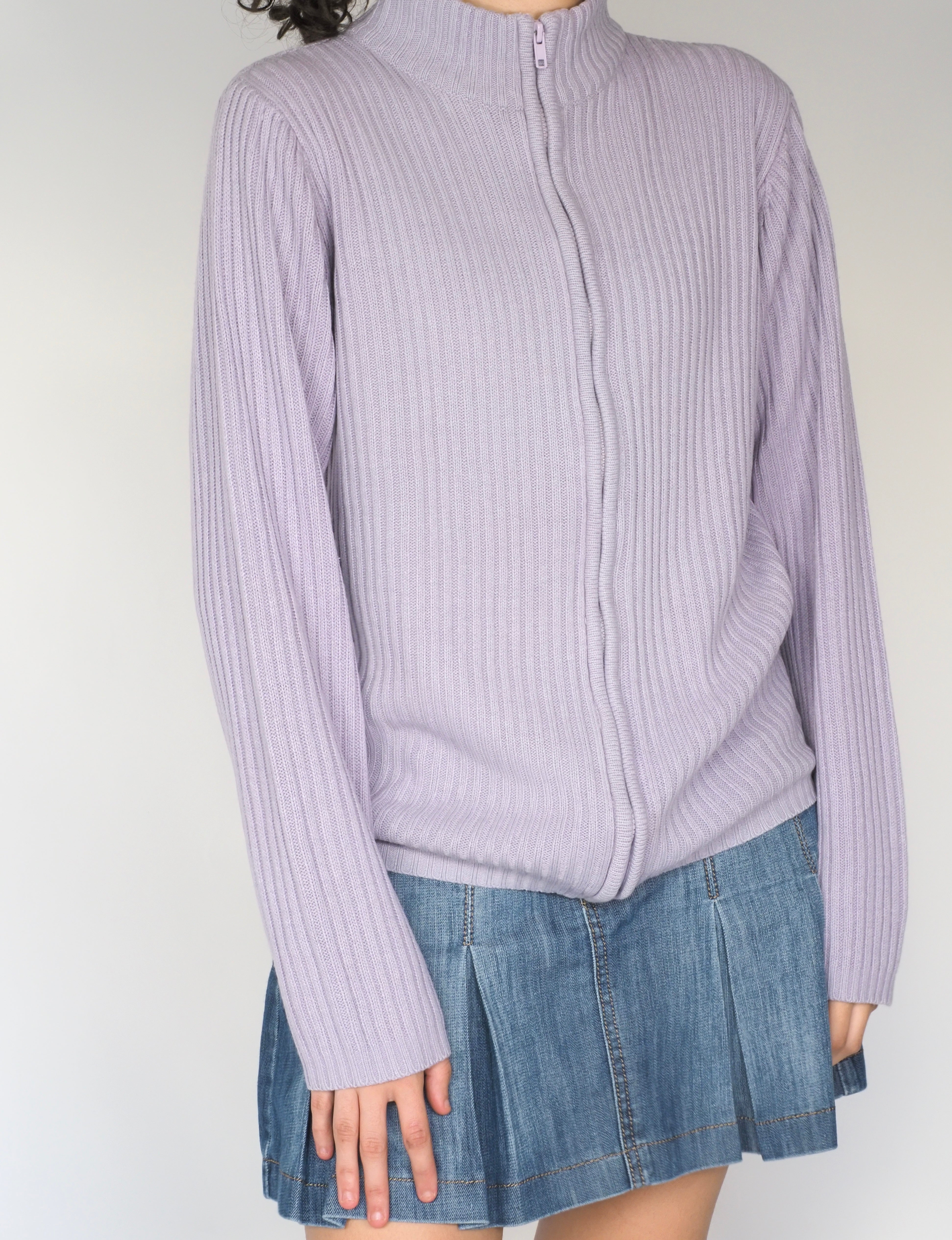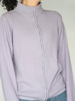 Lilac Ribbed Zip-Up Knit – Blue Wave