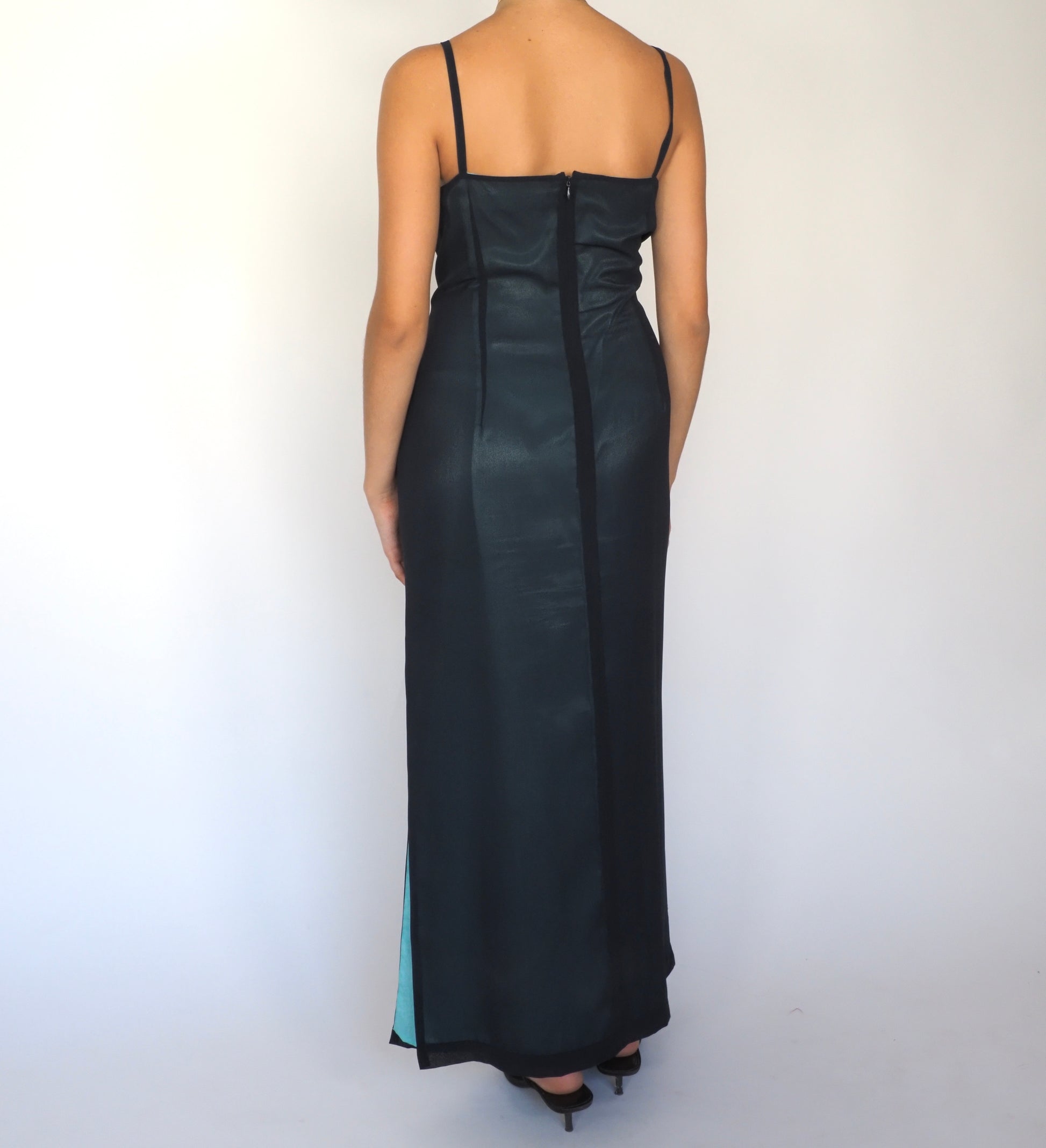 Midnight Blue Satin Beaded Slip Gown