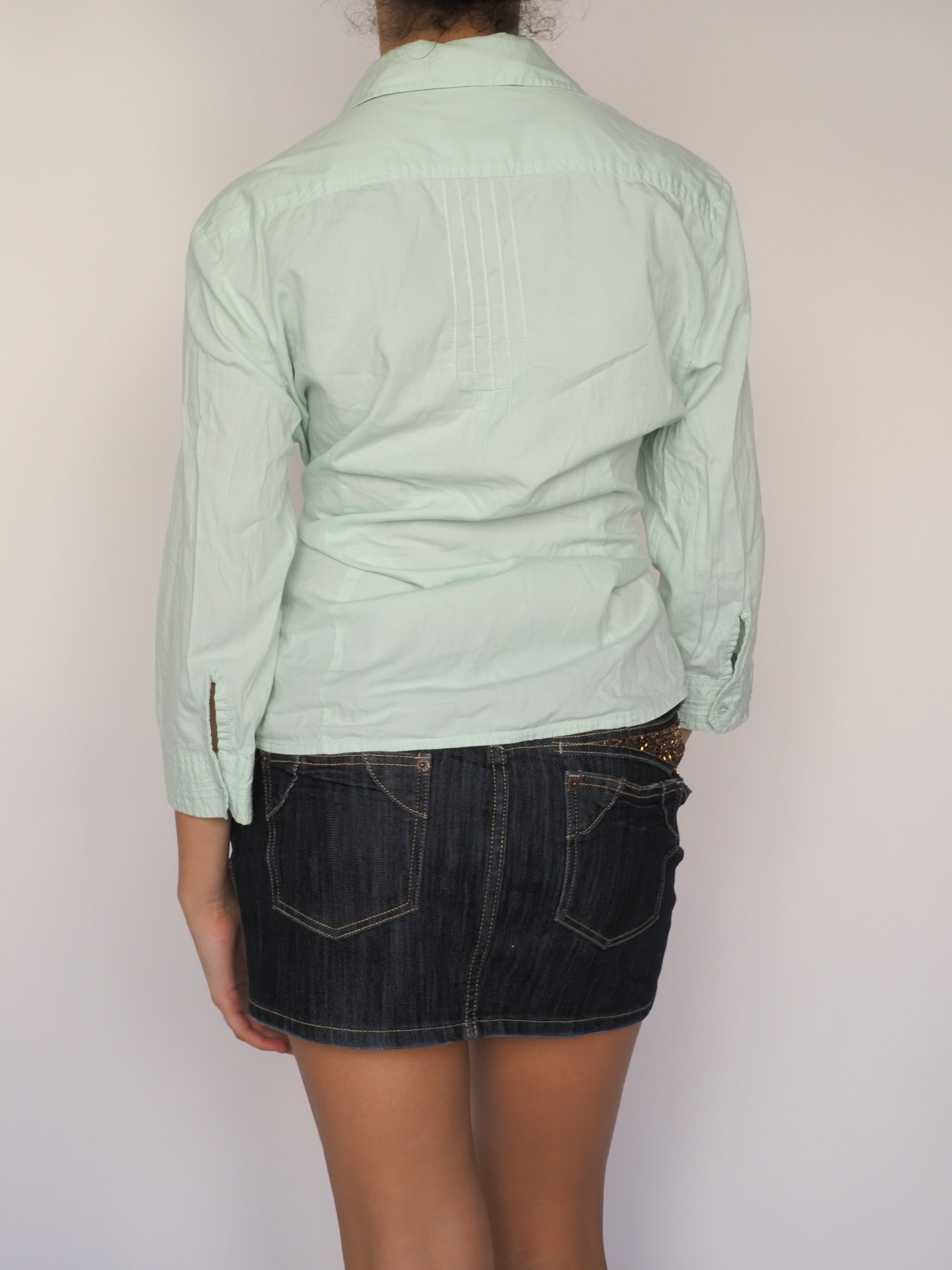 Mint Green Button-Up Blouse with Pintuck & Lace Detail – Bossini