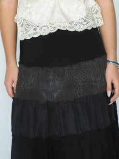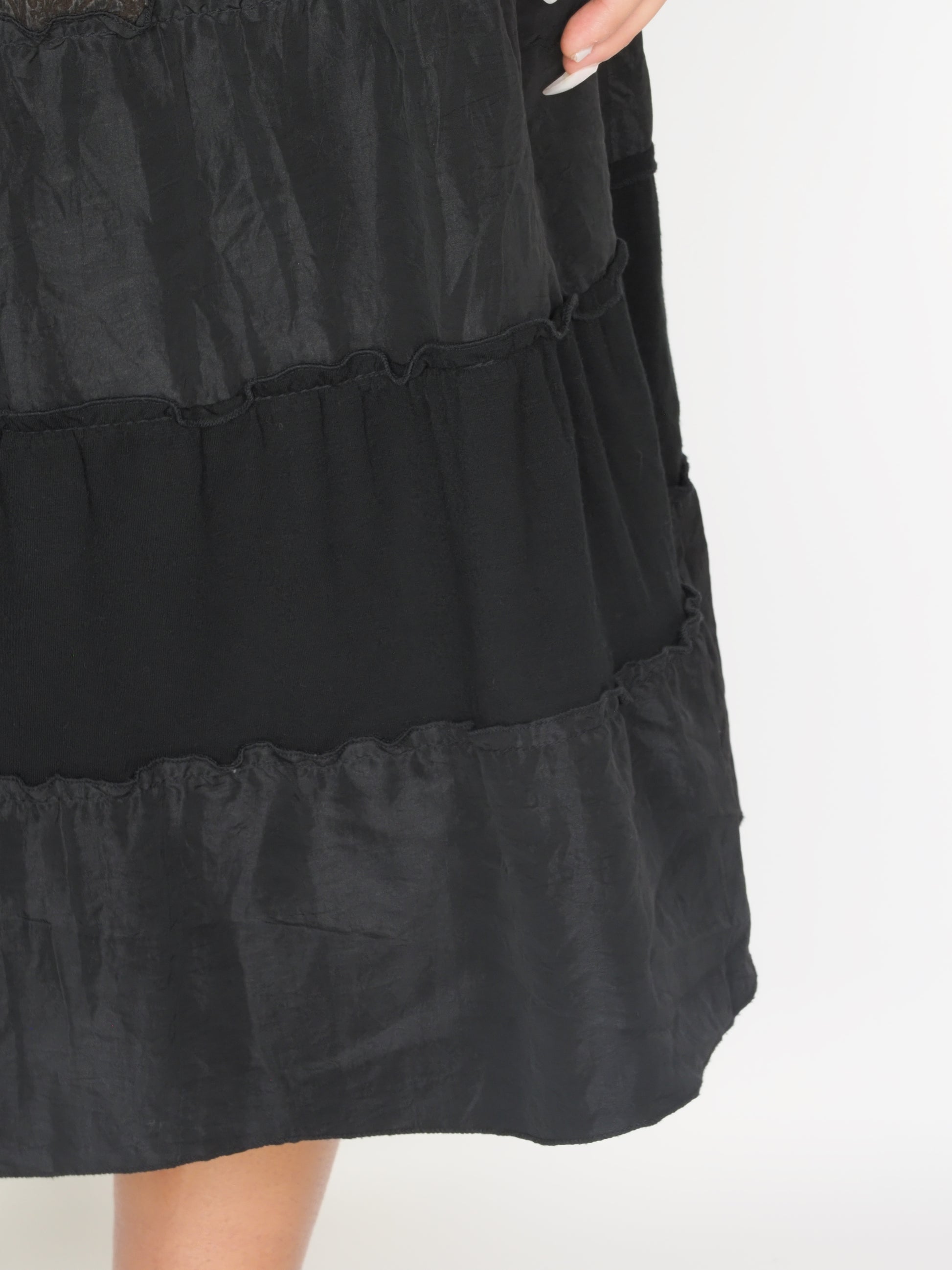 Mixed-Fabric Tiered Midi Skirt – Righi