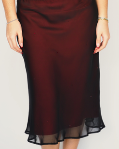 Burgundy Sheer Hem Midi Skirt – New Look (Vintage)