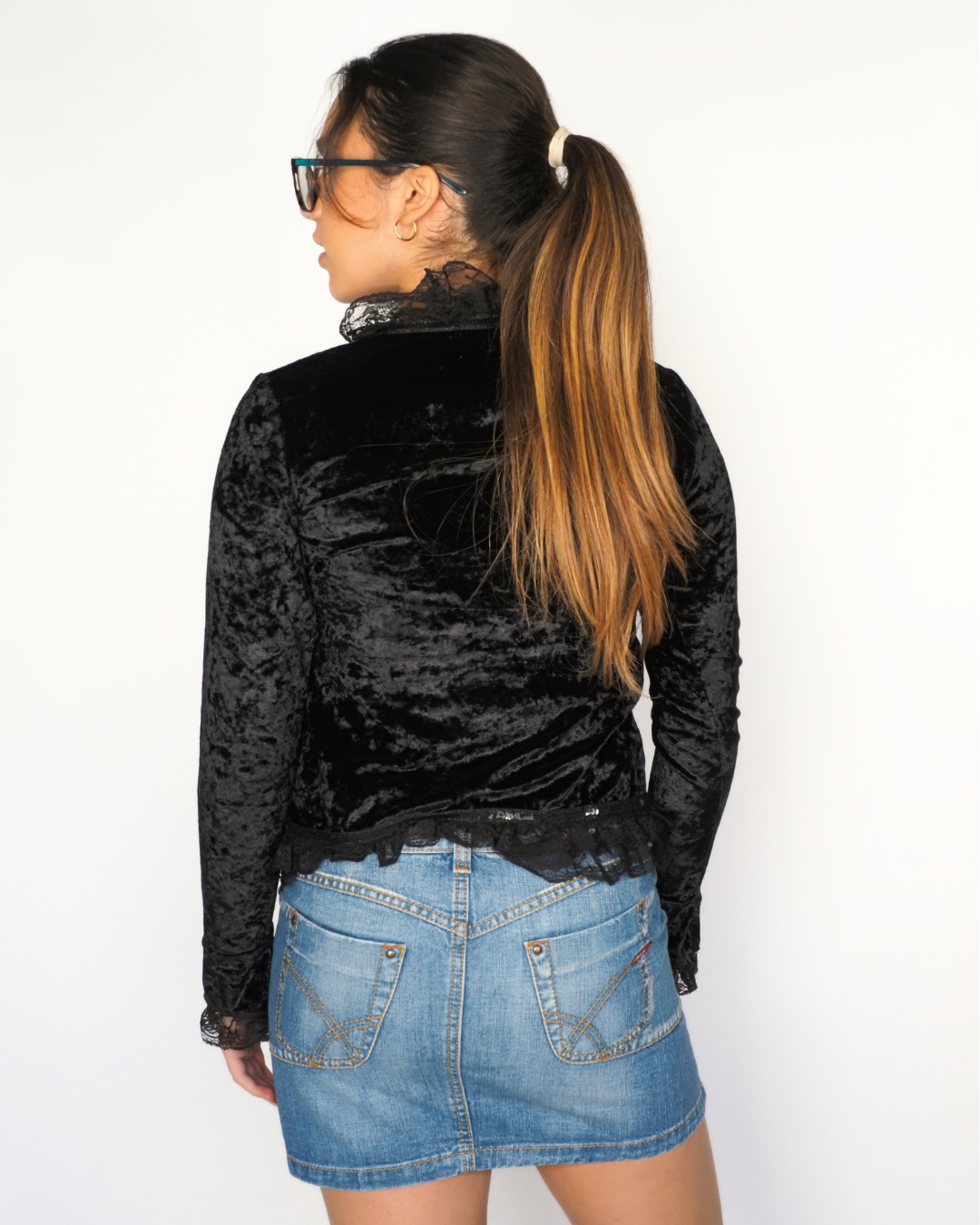 I.C.I.E Black Velvet Lace Tie-Front Cardigan