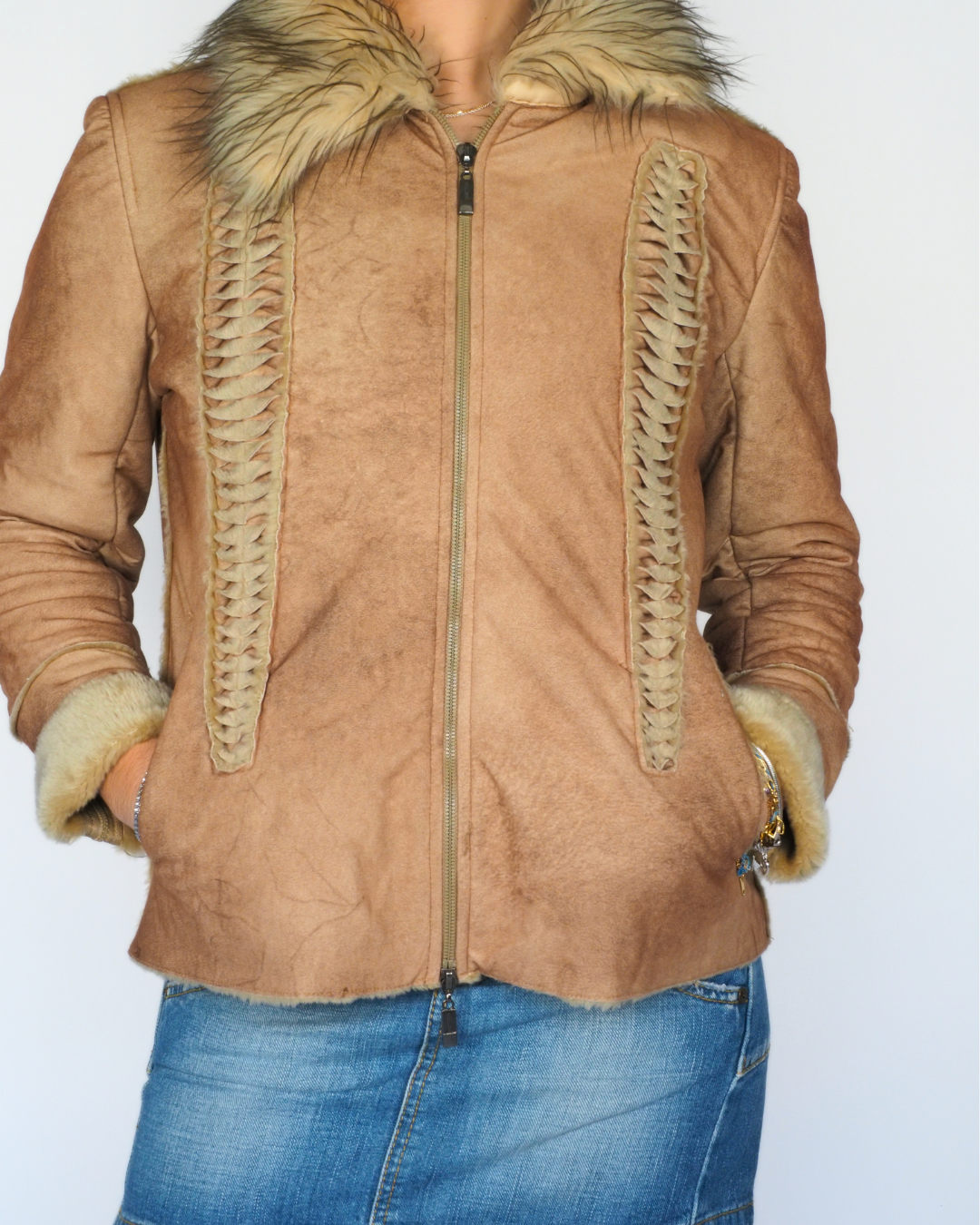 Tan Faux Suede Shearling Jacket – Aplx – Camel
