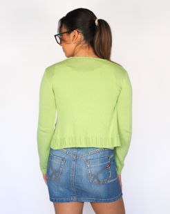 Kylie Lime Green Cropped Cardigan with Ruffle Trim & Yellow Buttonse