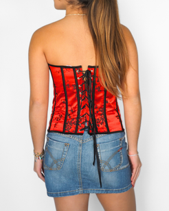 Vaacodo Red Satin Floral Lace-Up Corset Top – Strapless Y2K Burlesque Style