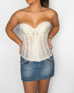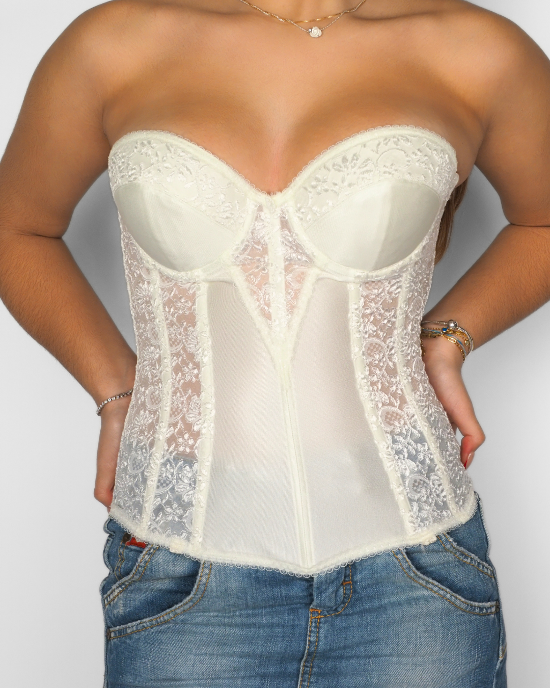 Vintage Di Lorenzo Ivory Lace Corset Top – Structured Bustier with Boning & Floral Lace Panels