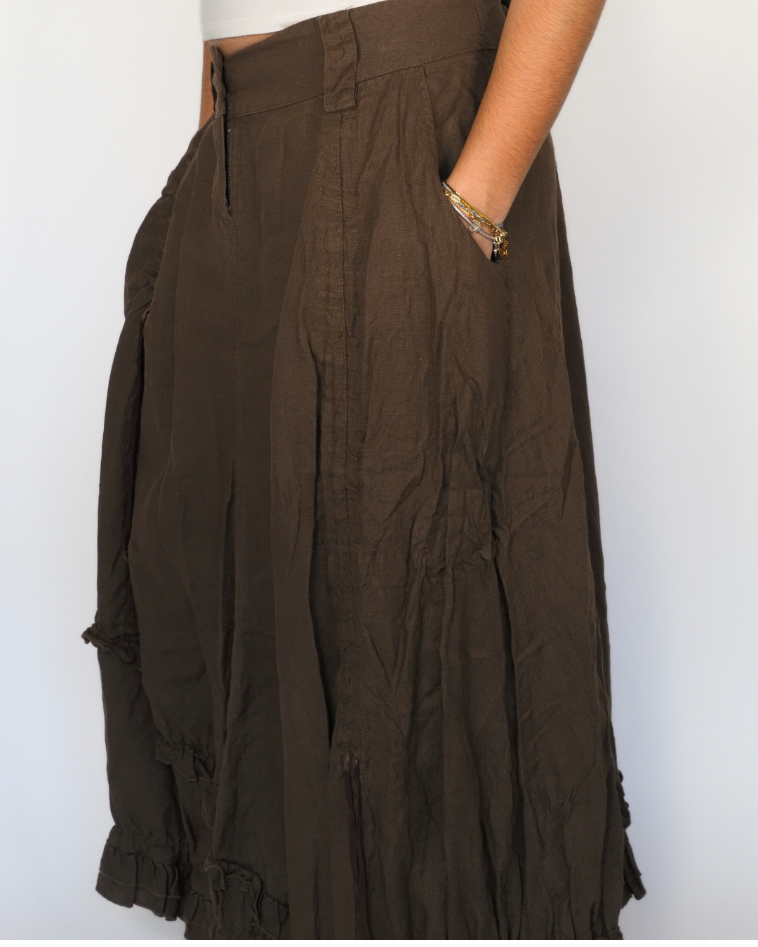 Chocolate Brown Boho Ruffle Maxi Skirt – Mori Castello