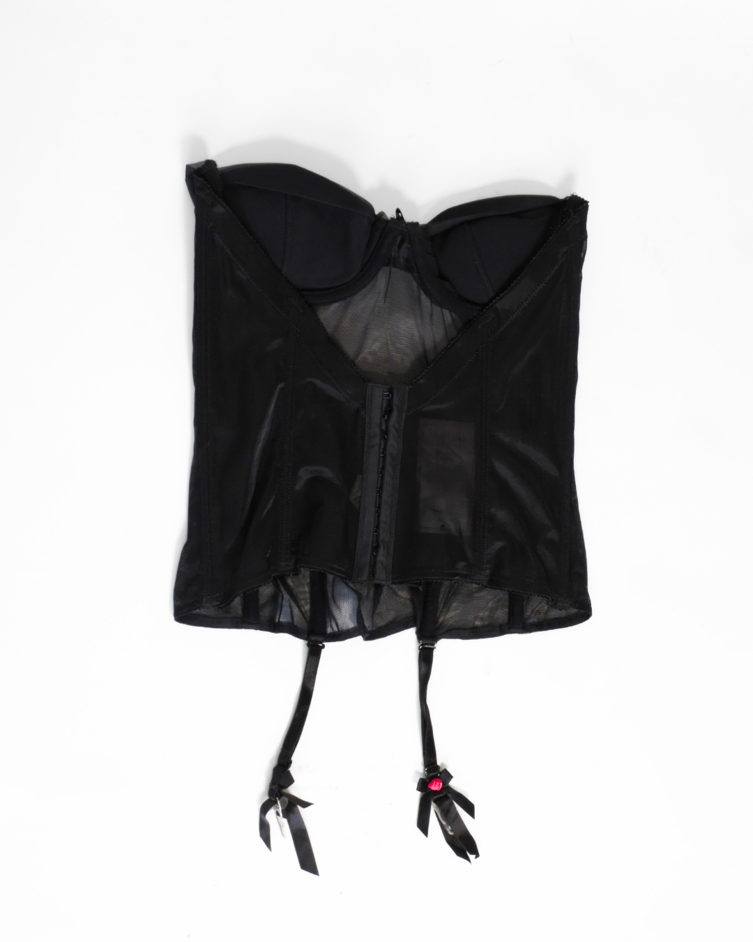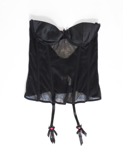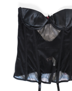 Y2K Jezebel Black Sheer Corset Basque with Garter Straps