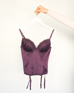 Y2K SiSi Intimate Plum Satin Corset Basque with Garter Straps