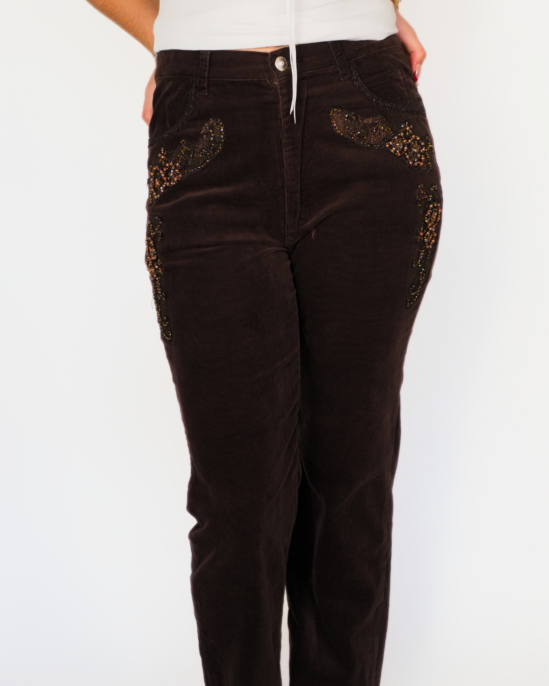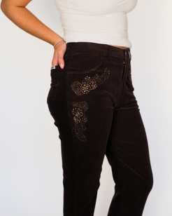 Brown Embellished Corduroy Trousers – Livia Cento