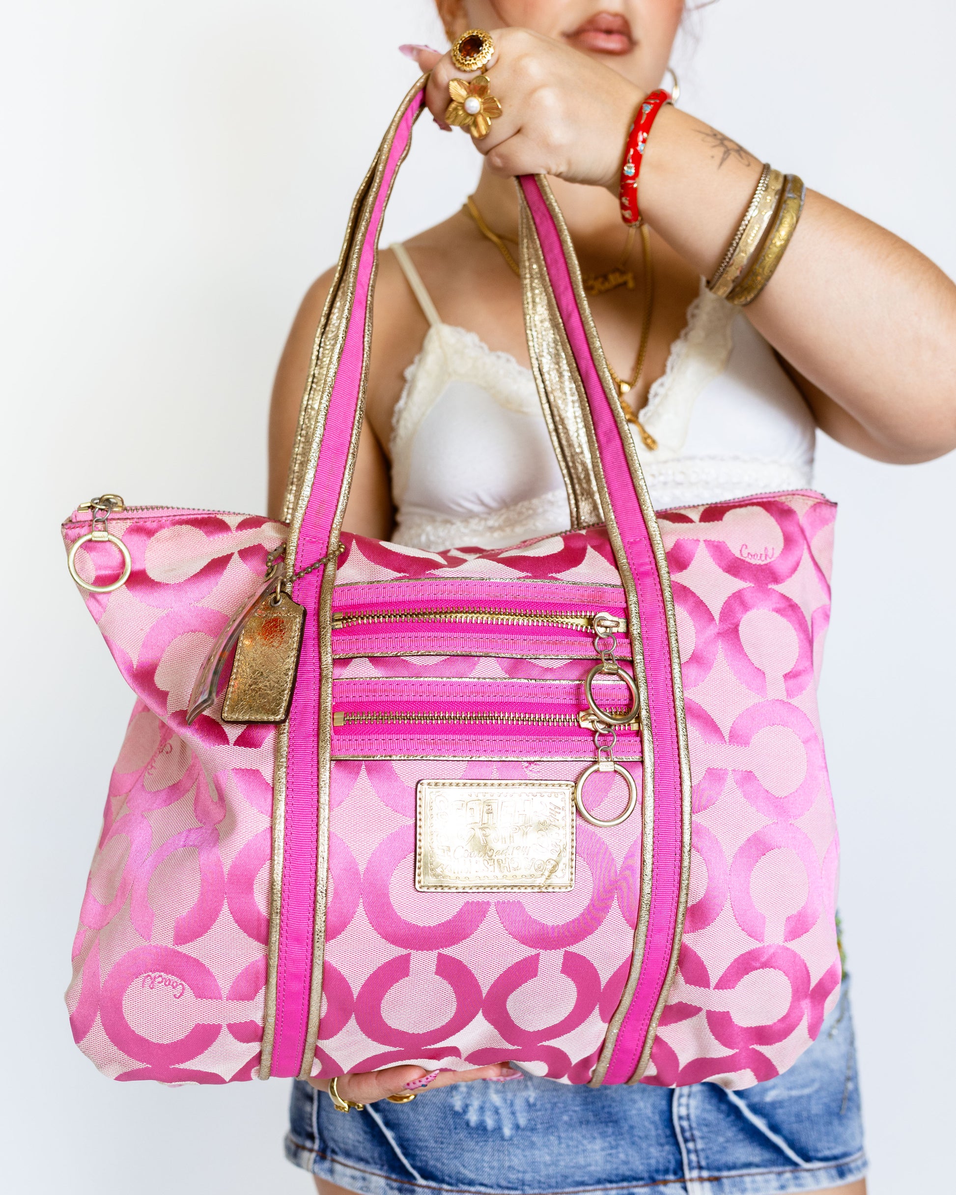 The Coach Poppy collection exploded in the late 2000s as Coach’s youthful, playful line — and this tote was one of its breakout stars. The “Op Art” print is a modern twist on the signature C, and the pink/gold combo makes it one of the most sought-after colourways. Originally targeted to Gen Z before Gen Z even existed 👛💗