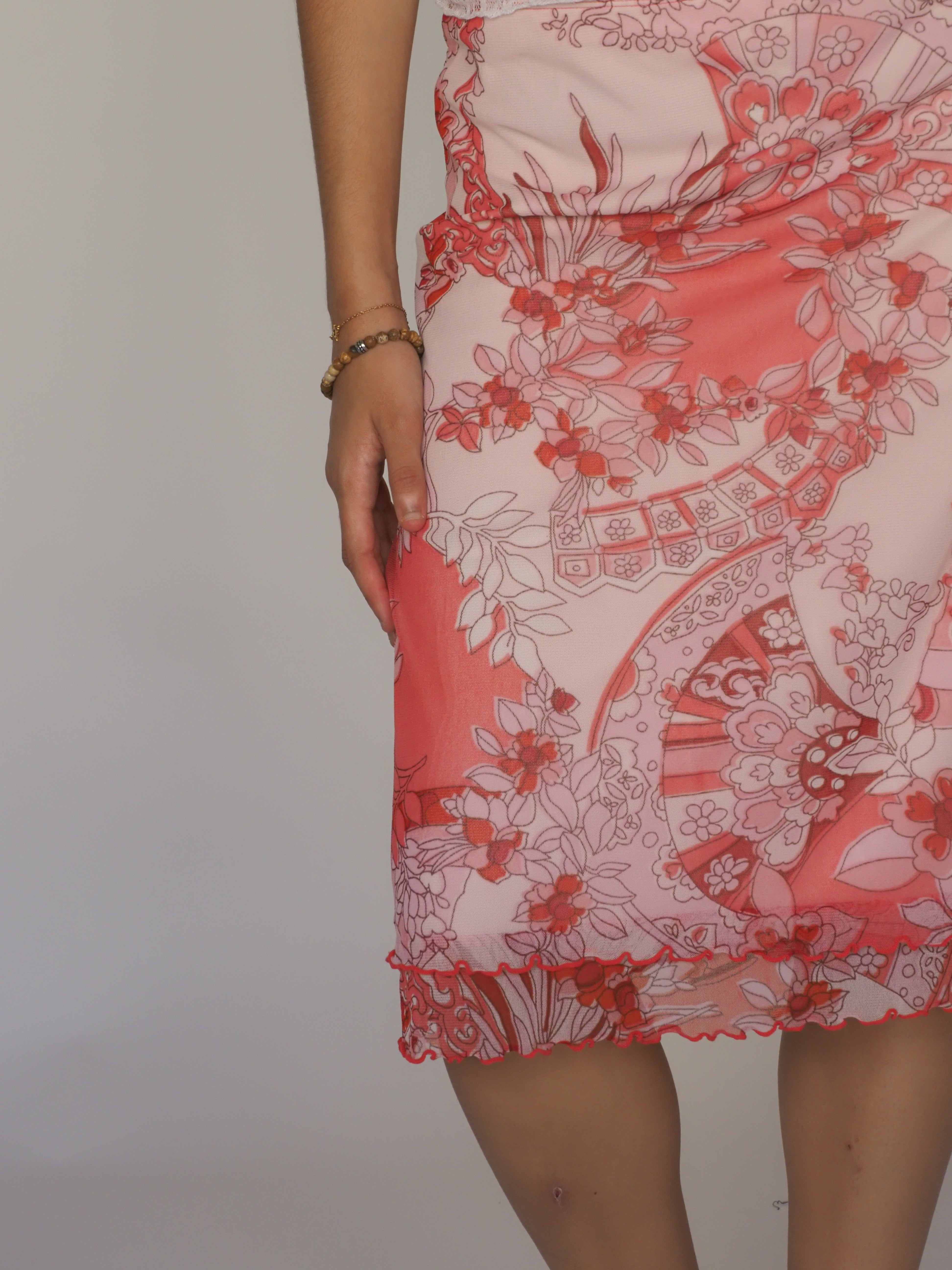 Pink & Red Floral Chiffon Overlay Skirt – Mexx