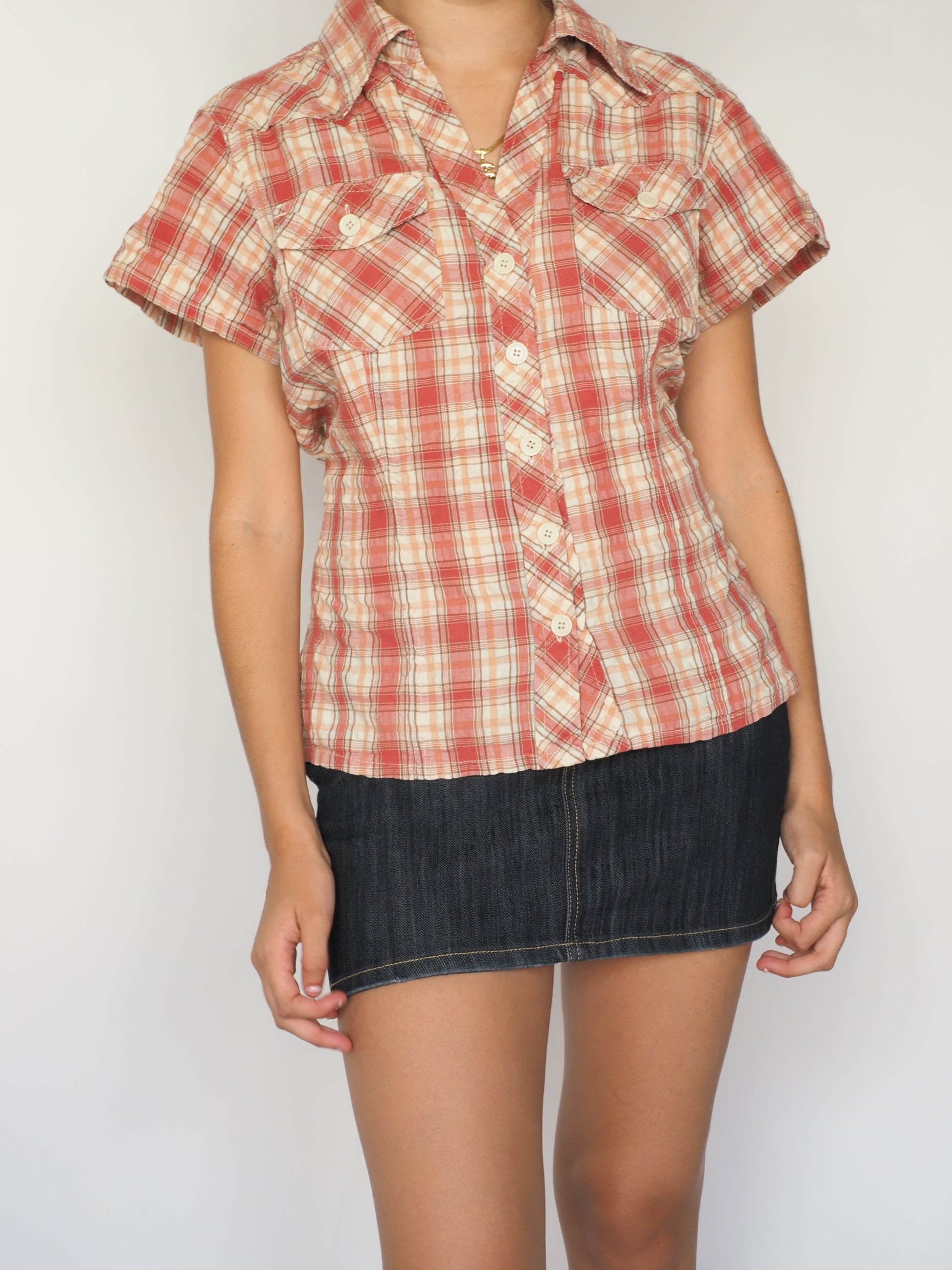 Red & Beige Plaid Button-Up Short Sleeve Shirt – Bay