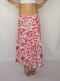 Red & White Floral Tiered Maxi Skirt – E-vie