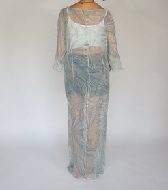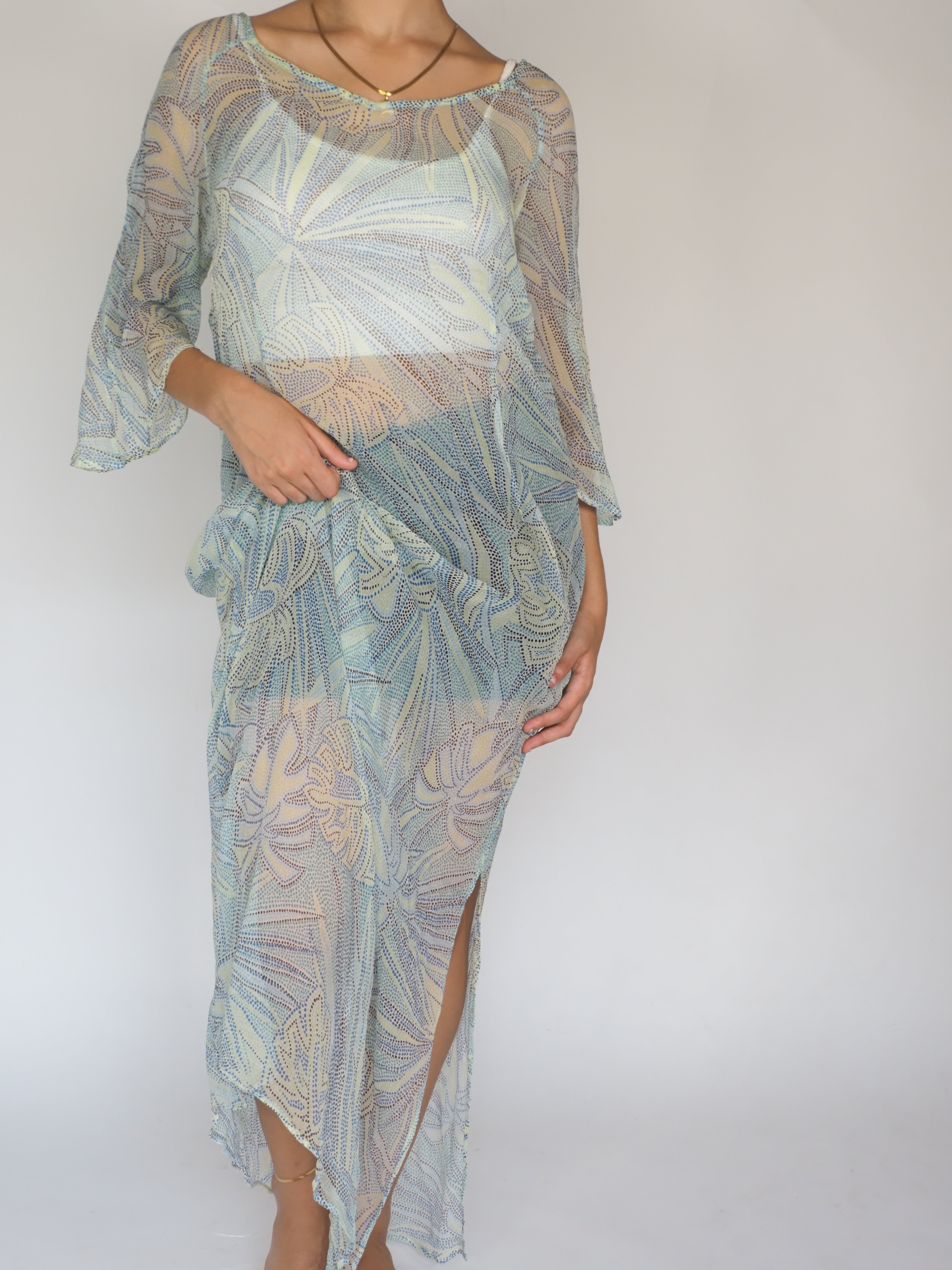 Sheer Tropical Mesh Maxi Dress with Side Slit