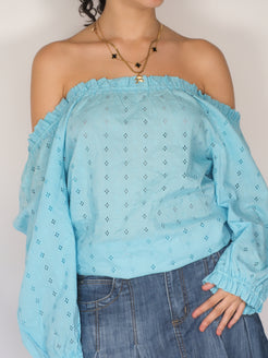 Sky Blue Broderie Anglaise Off-Shoulder Blouse