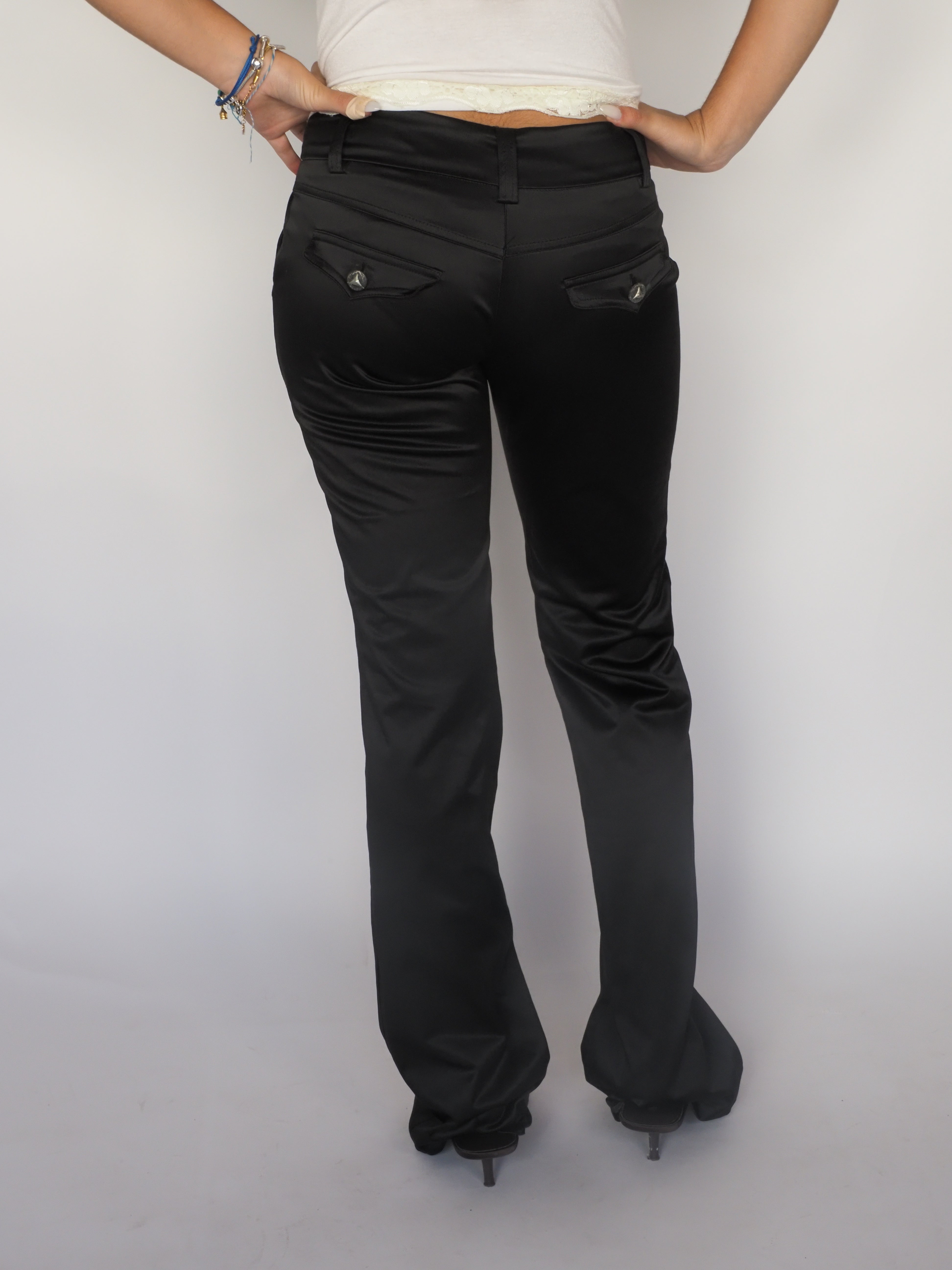 Tenax Y Valades Lace-Up Flare Jeans in Mid-Wash Denim