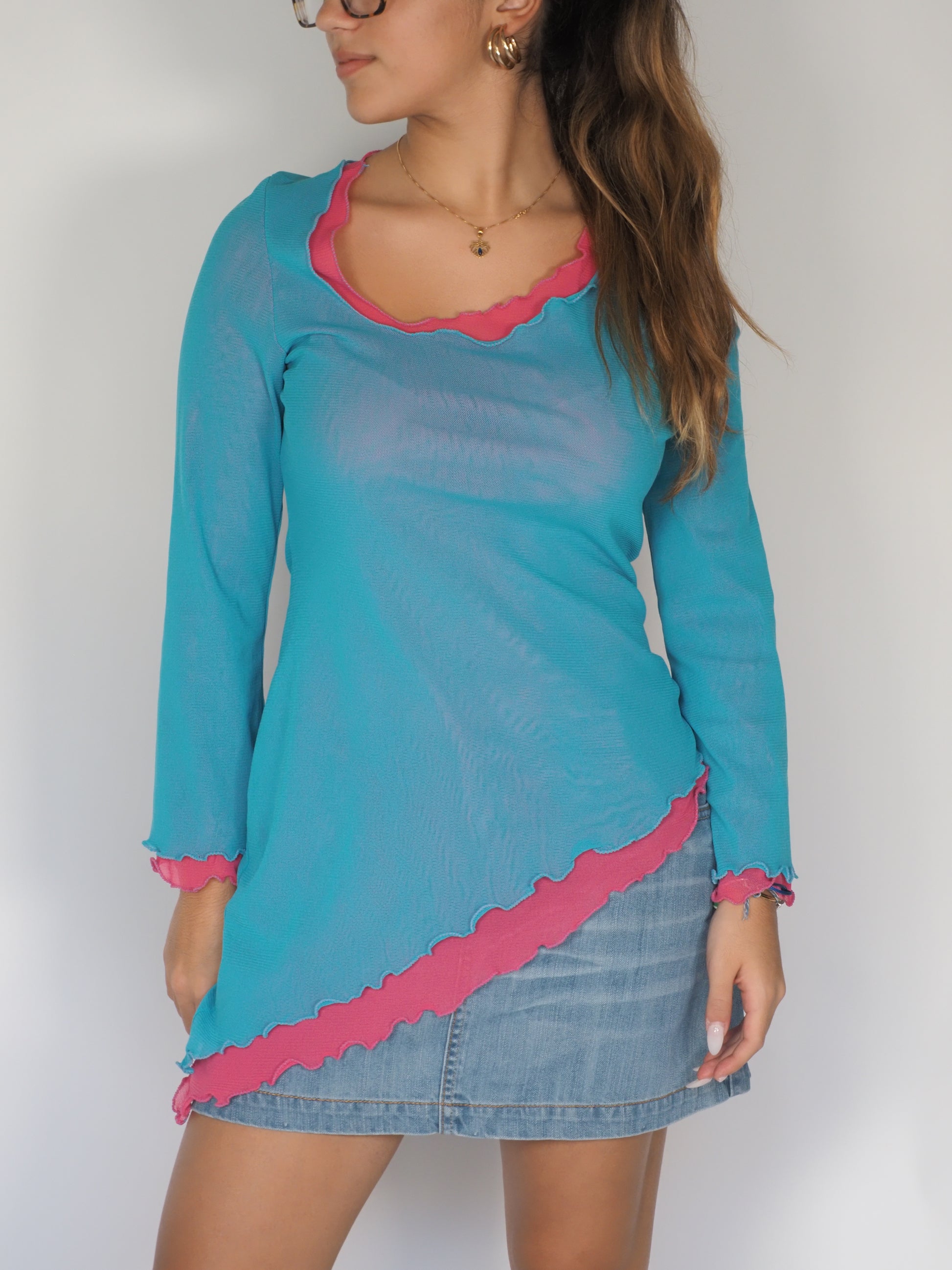 Two-Tone Mesh Asymmetrical Top in Aqua & Fuchsia – Explosion