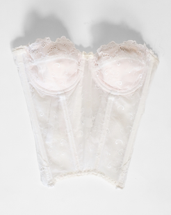 Sheer Ivory Lace Corset Top with Embroidered Mesh & Ruffle Trim