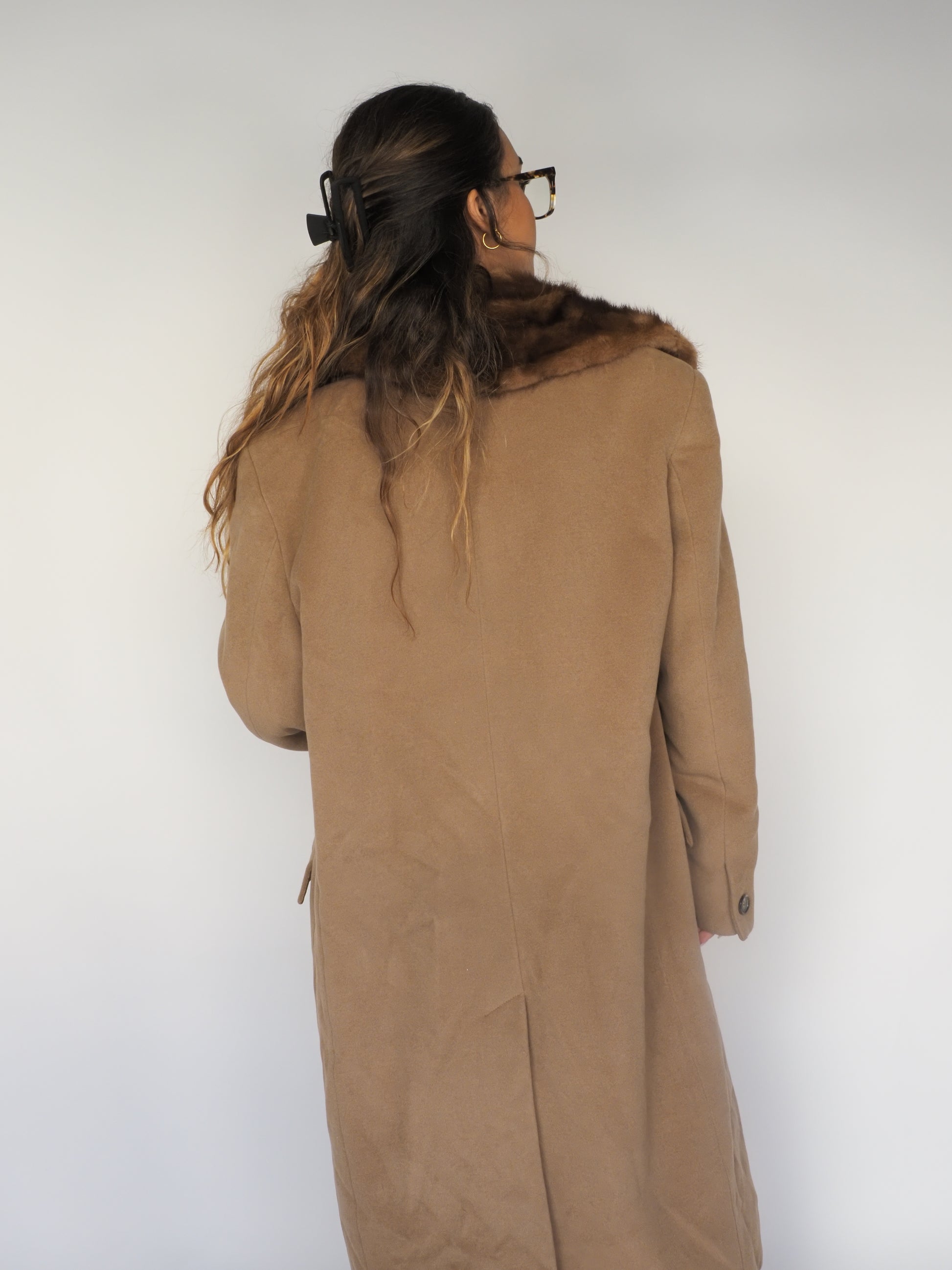 Vintage Camel Wool Coat with Real Fur Collar – Marella