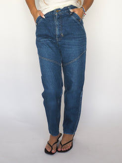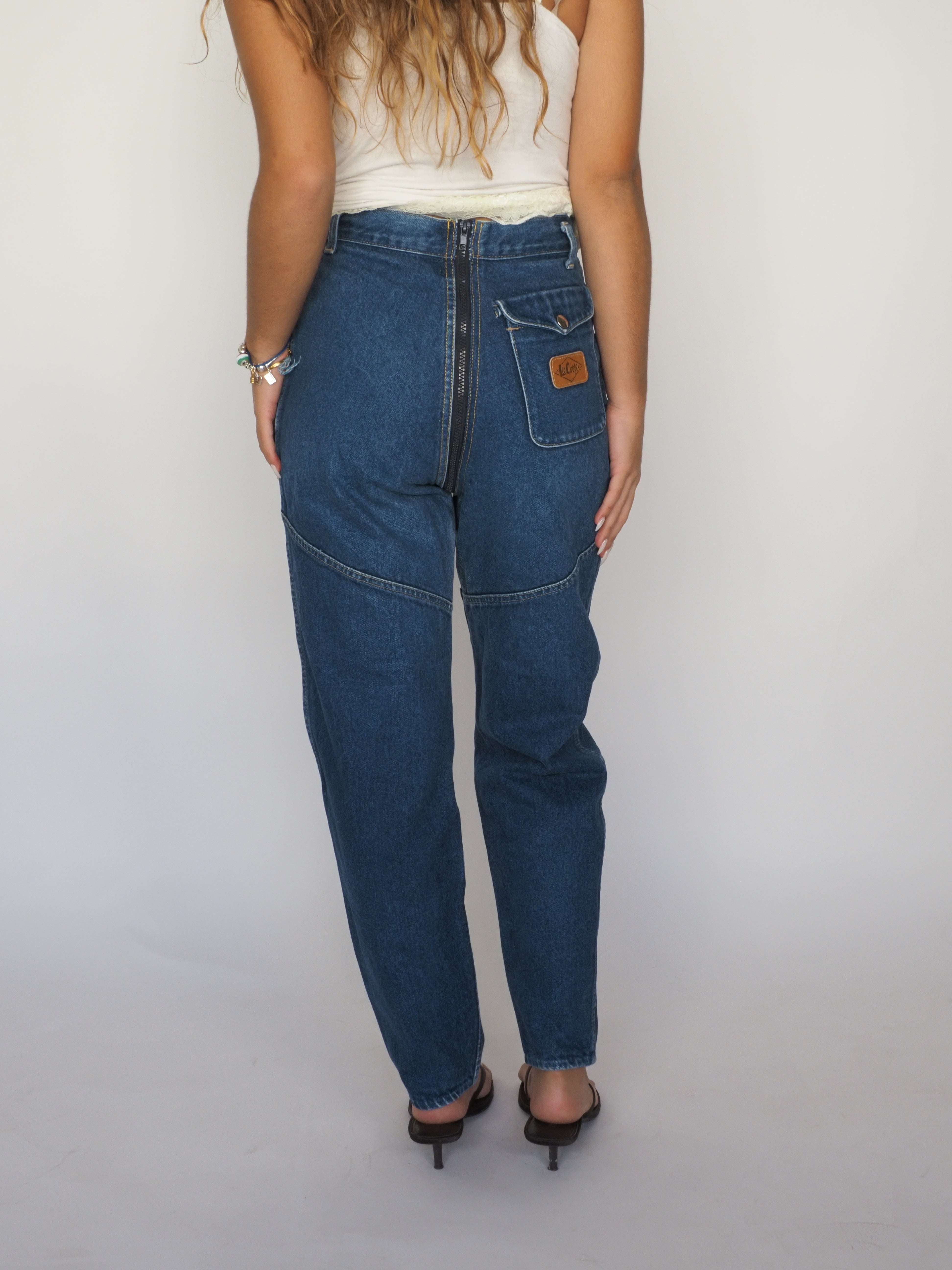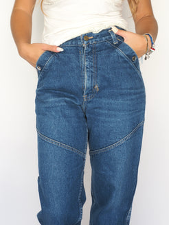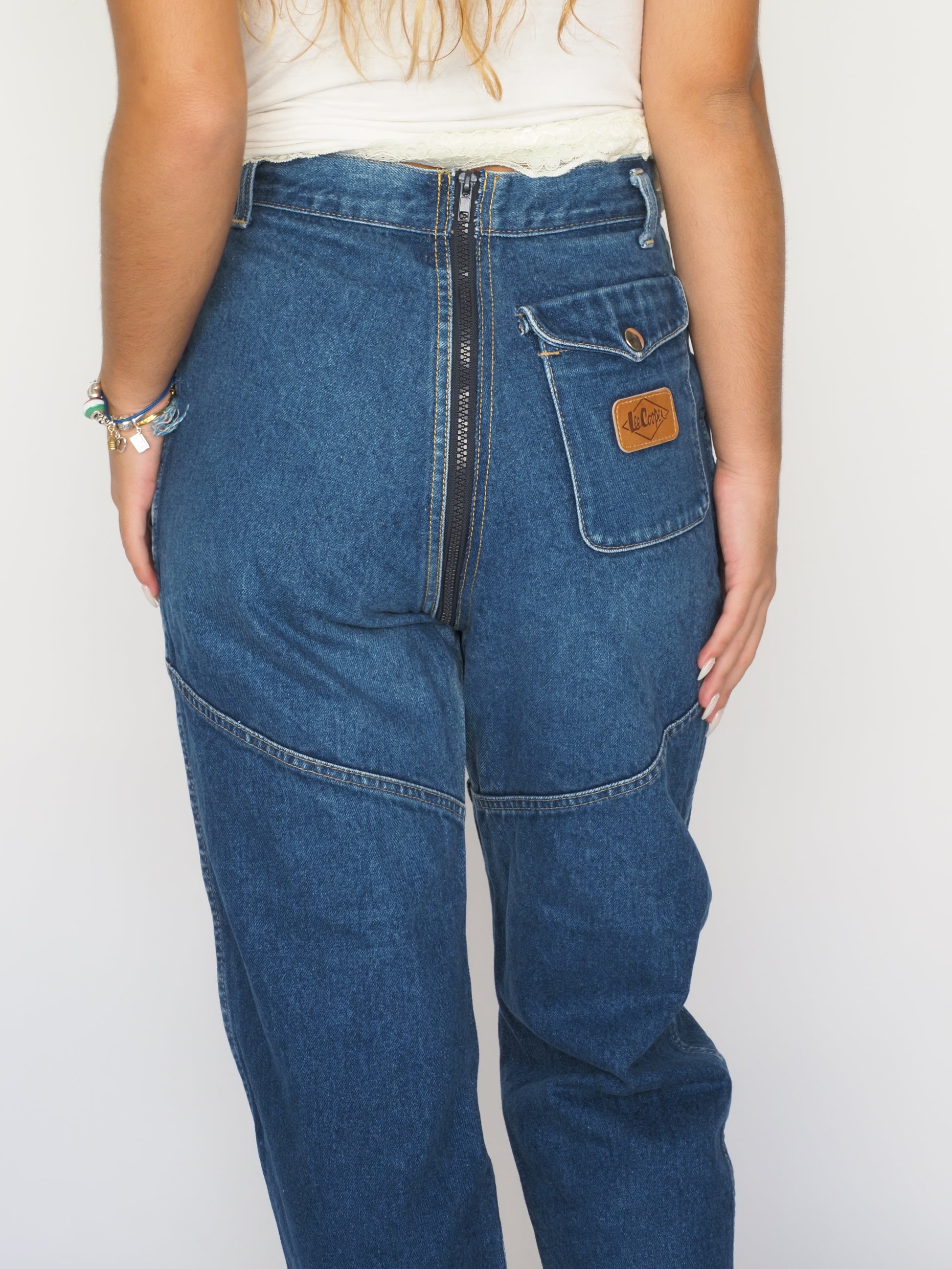 Vintage Lee Cooper High-Waisted Blue Jeans with Unique Stitch Paneling